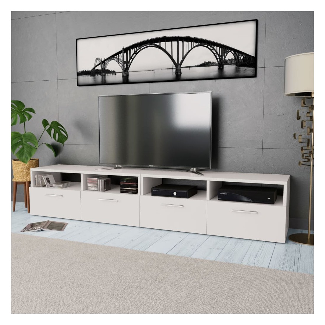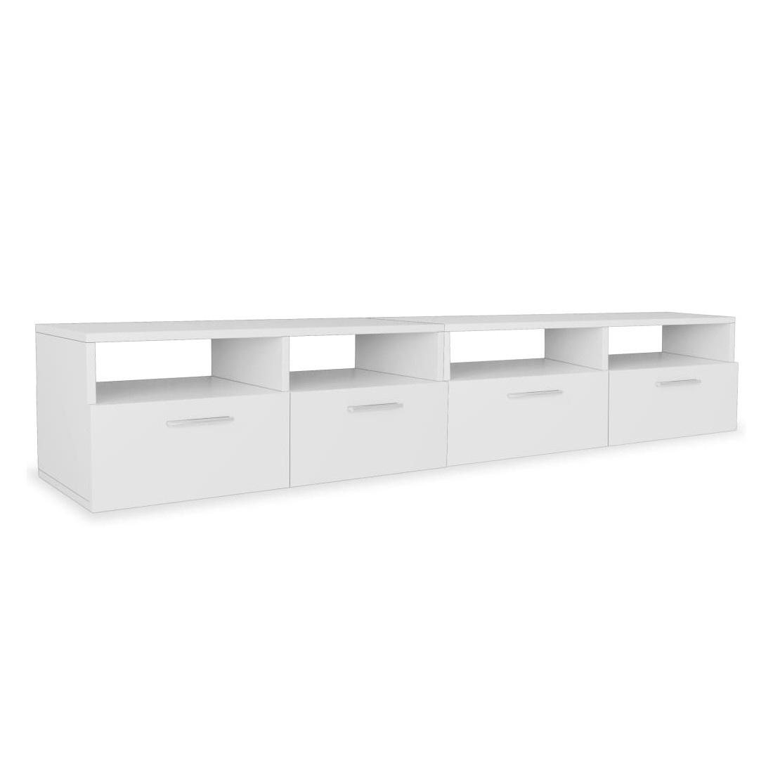 Les meubles TV modernes ont un design sobre et pratique et conviendront à n'importe quel décor de maison. Les meubles HiFi sont en bois d’ingénierie avec des bords en PVC et sont stables et durables. Chaque meuble a deux étagères ouvertes et deux armoires avec des portes s'ouvrant vers le bas qui ont amplement d'espace de rangement pour votre lecteur DVD, console de jeu, récepteur numérique ou vos supports média. Les meubles TV seront un excellent supplément à votre chambre à coucher ou salon. L'assemblage est facile. La livraison comprend 2 armoires TV.