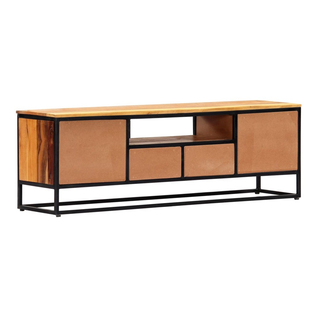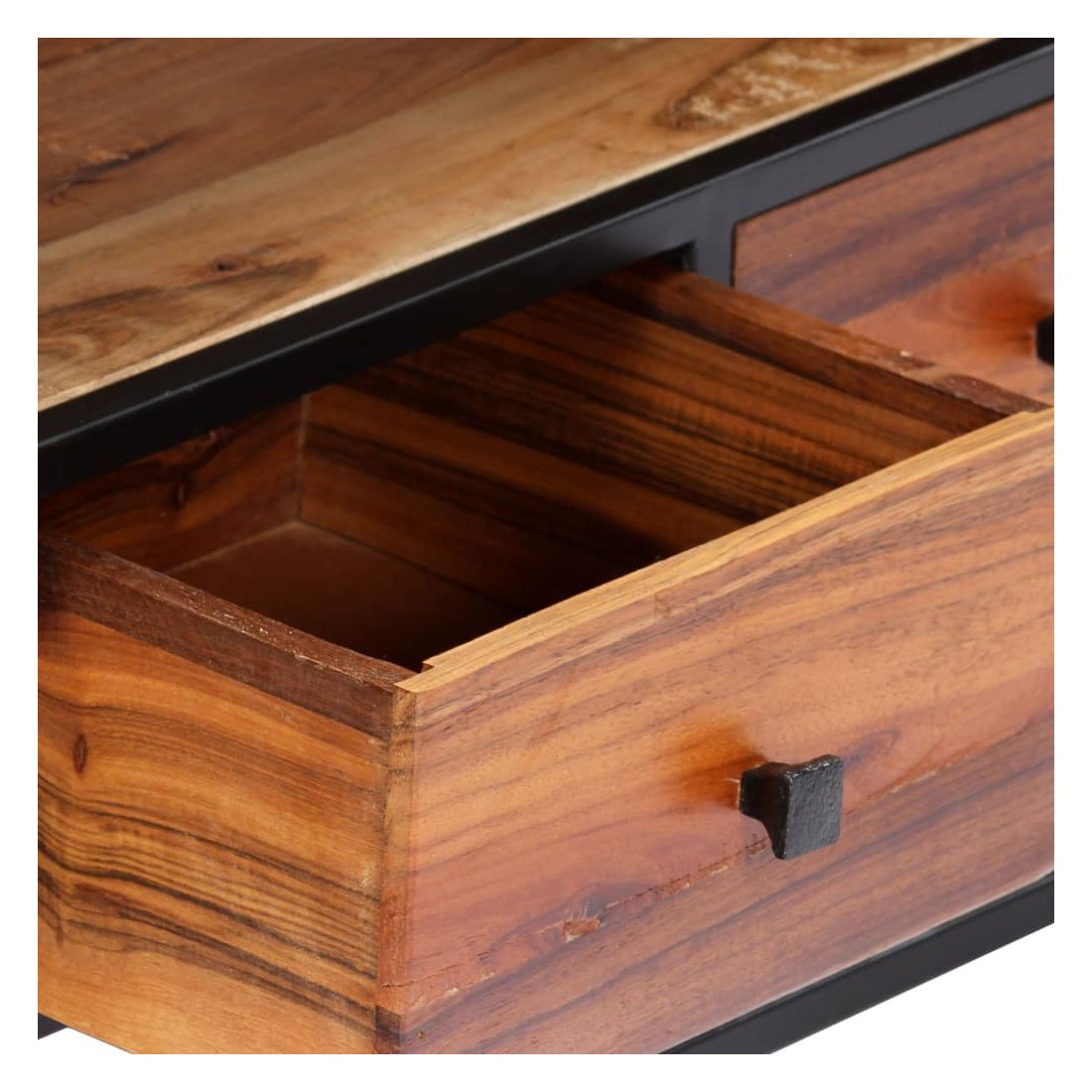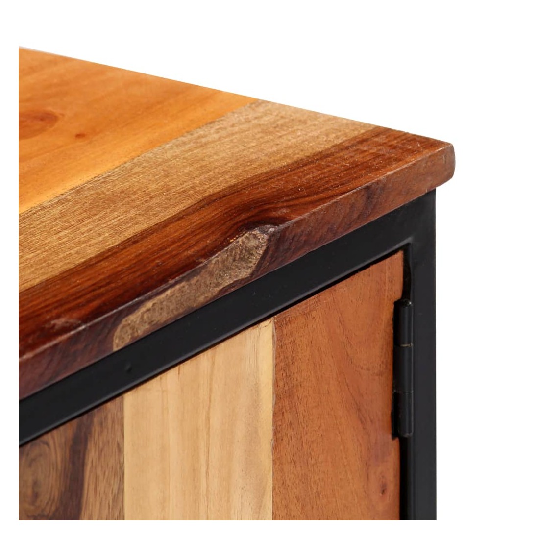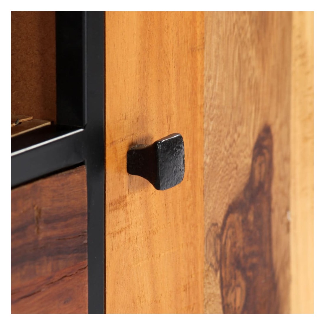 Apportez une touche d'élégance du milieu du siècle à votre intérieur avec notre beau meuble TV en bois de récupération massif ! Cette armoire Hi-Fi est fabriquée en bois de récupération massif provenant des solives, des planchers et des poutres de soutènement de vieux bâtiments démolis et peut être composée de différents types de bois comme pin, teck, hêtre, chêne, cèdre, bois de manguier, acacia etc. Cela signifie que le bois de récupération conserve les caractéristiques de ces différents types de bois. Le bois de récupération est déjà vieilli, patiné et séché, donc il ne rétrécit pas et ne se plie pas. Chaque étape du processus est réalisée avec le plus grand soin, que ce soit le polissage, la peinture ou le laquage. L'artisanat exquis et les grains de bois gracieux rendent chaque meuble distinctif et légèrement différent l'un de l'autre. Cette armoire à plasma se distingue par 2 portes, 2 tiroirs et 1 compartiment, offrant une solution idéale pour garder vos petits objets rangés et à portée de main. De plus, la structure en acier enduit de poudre ajoute à la robustesse et à la stabilité de l'armoire. Le support TV est facile à assembler. Note importante : Les couleurs et les grains de bois varient d'une pièce à l'autre, ce qui rend chacun de nos meubles TV unique. La livraison est aléatoire, ce qui garantit l'exclusivité et l'individualité de votre produit.
