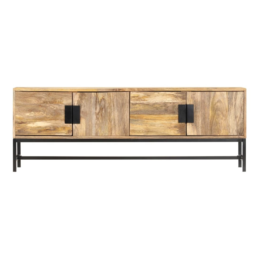 Si vous recherchez une touche de charme rustique à ajouter à votre décor intérieur, notre meuble TV en bois massif sera pour vous. Équipé d'un grand espace de rangement pour organiser divers articles, ce meuble TV sera certainement un supplément pratique et accrocheur dans votre maison. L'armoire HiFi est fabriquée en bois de manguier massif qui a reçu une belle finition par lustrage, peinture et laquage, ce qui dégage un look raffiné. Le bois de manguier massif a la force de supporter le poids et de résister à l'usure du temps. De plus, l’artisanat exquis et les beaux grains de bois rendent chaque pièce de meubles distinctive et légèrement différente l'une de l'autre. Les pieds robustes en acier enduit de poudre assurent sa robustesse et sa durabilité. Remarque importante : les variat