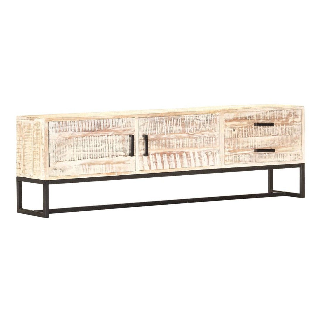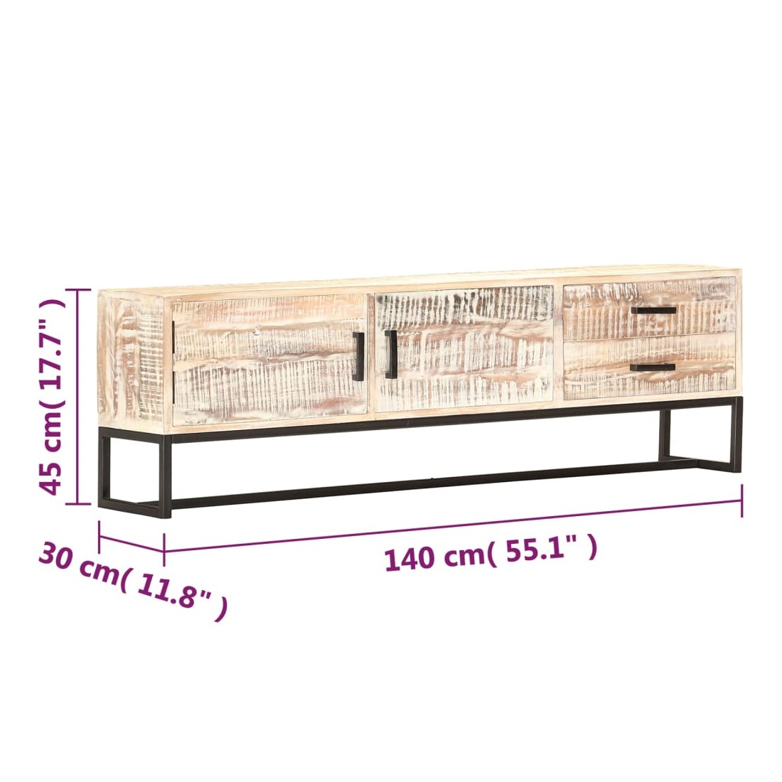Meuble TV Blanc 140 x 30 x 45 cm Bois d'acacia massif