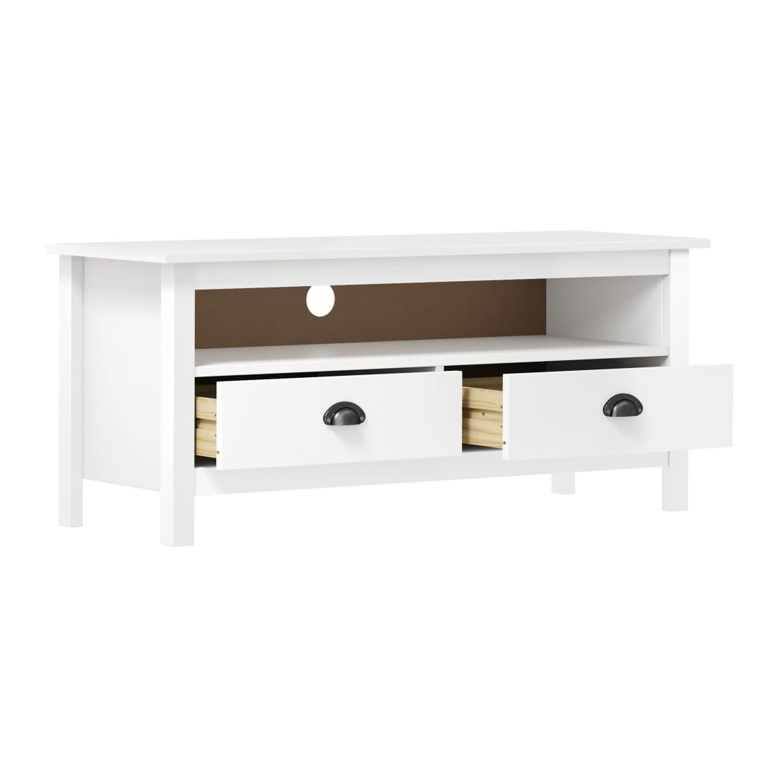 Si vous recherchez à ajouter une touche de charme rustique à votre décoration intérieure, notre meuble TV en bois massif sera pour vous. Ce buffet est fait de bois de pin massif, ce qui le rend stable et robuste. L’armoire stéréo est équipée de 2 tiroirs avec des poignées de tasse et de 1 compartiment, offrant un grand espace de rangement pour afficher ou garder tous les articles que vous souhaitez bien organisé. Remarque importante : les couleurs varient d'une pièce à l'autre, ce qui rend chacun de nos supports TV en bois unique.