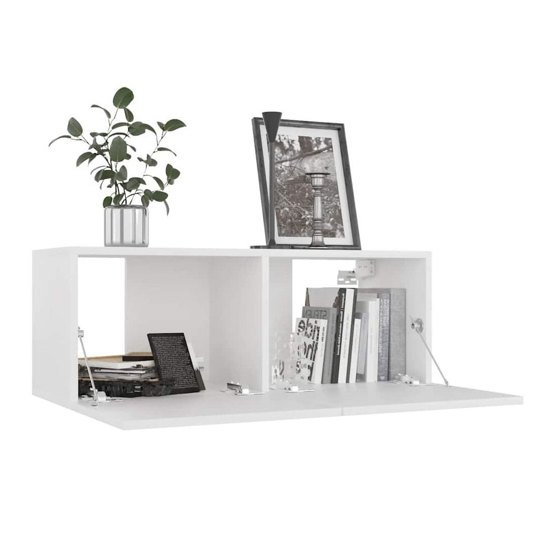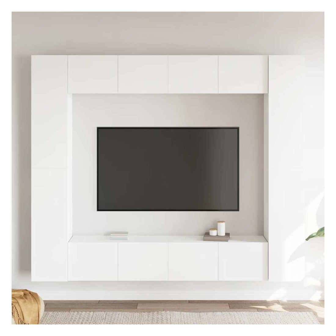 Cet ensemble de meuble TV robuste est destiné à être le point de mire de votre pièce avec un design à la fois tendance et pratique. Le meuble TV est fixé au mur, ce qui en fait un supplément intemporel à votre maison. Il offre de nombreux compartiments de rangement, ce qui en fait un endroit idéal pour stocker tous vos livres, magazines, DVD ou autres objets. Le meuble stéréo est facile à entretenir et à nettoyer avec un chiffon humide.