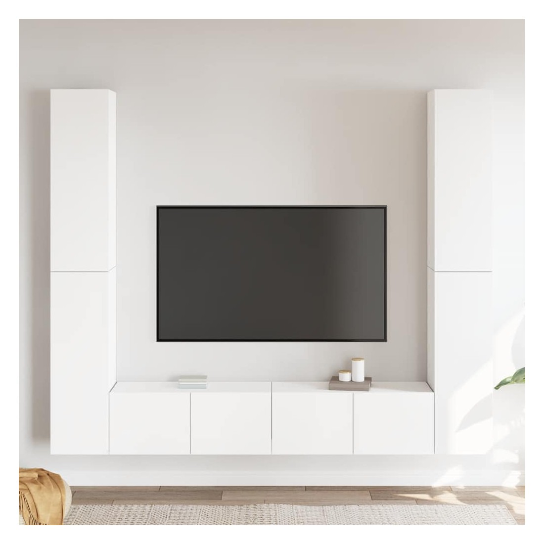 Équipé d'un grand espace de rangement pour organiser divers articles, cet ensemble de meuble TV suspendu sera certainement un supplément pratique et accrocheur dans votre maison. Le meuble TV est fixé au mur, ce qui en fait un supplément intemporel à votre maison. Cet ensemble d’armoire HiFi est idéal pour afficher ou garder bien organisés ou à portée de main tous les articles préférés. De plus, l’ensemble d’armoire stéréo est facile à nettoyer avec un chiffon humide.