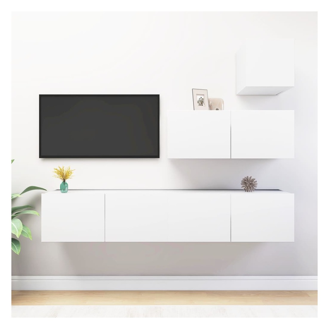Ce meuble TV, doté d'un design moderne et d'un grand espace de rangement, devient un point de mire de votre salon. Cet ensemble de meuble TV suspendu est fabriqué en bois d'ingénierie, ce qui le rend robuste et durable. L'ensemble est fixé au mur, ce qui en fait un supplément intemporel à votre maison. L’ensemble dispose de plusieurs compartiments qui en font un endroit idéal pour stocker tous vos magazines, DVD ou autres articles. Cet ensemble de meuble Hifi est facile à nettoyer avec un chiffon humide.