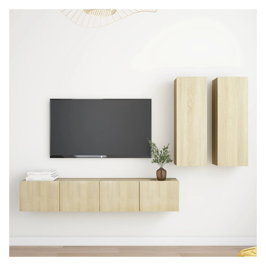 Équipé d'un grand espace de rangement pour organiser divers articles, cet ensemble de meuble TV suspendu sera certainement un supplément pratique et accrocheur dans votre maison. Le meuble TV est fixé au mur, ce qui en fait un supplément intemporel à votre maison. Cet ensemble d’armoire HiFi est idéal pour afficher ou garder bien organisés ou à portée de main tous les articles préférés. De plus, l’ensemble d’armoire stéréo est facile à nettoyer avec un chiffon humide.