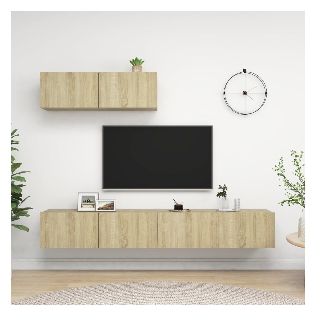 Équipé d'un grand espace de rangement pour organiser divers articles, le meuble TV suspendu sera certainement un supplément pratique et accrocheur dans votre maison. Le meuble TV est fixé au mur, ce qui en fait un supplément intemporel à votre maison. L’armoire HiFi est idéale pour afficher ou garder bien organisés ou à portée de main tous les articles préférés. De plus, l’armoire stéréo est facile à nettoyer avec un chiffon humide.