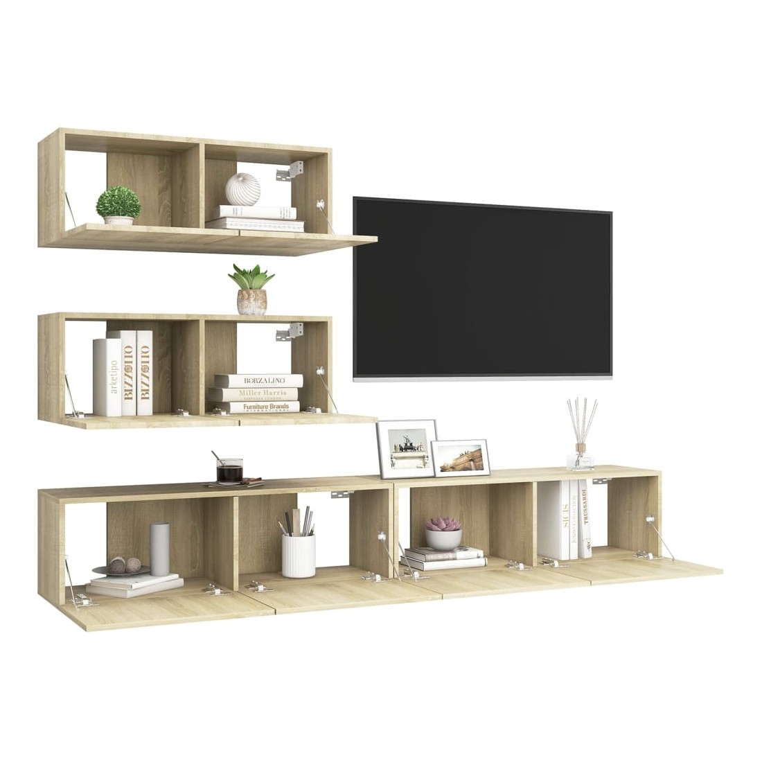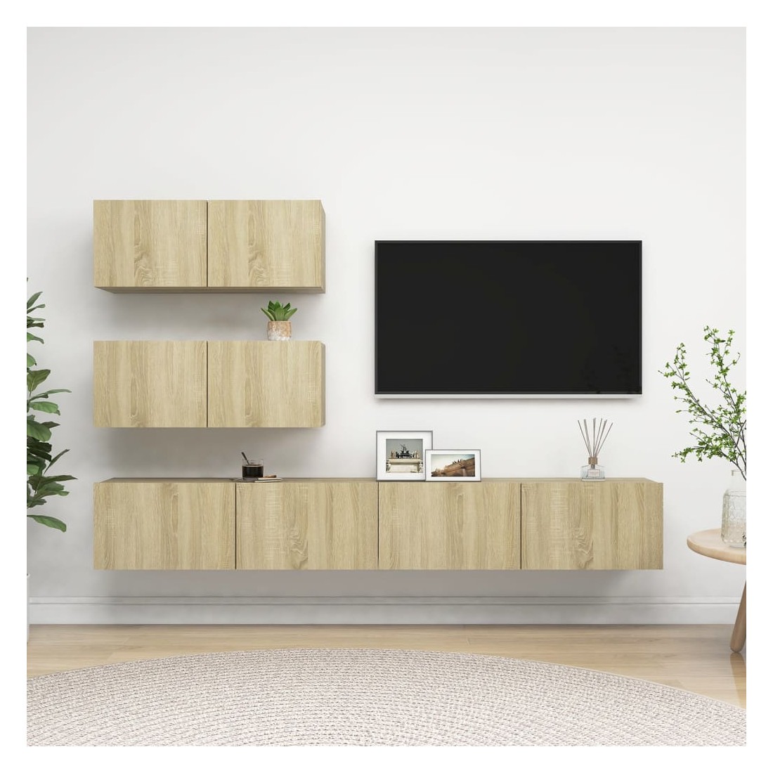 Ce meuble TV, doté d'un design moderne et d'un grand espace de rangement, devient un point de mire de votre salon. Cet ensemble de meuble TV suspendu est fabriqué en bois d'ingénierie, ce qui le rend robuste et durable. L'ensemble est fixé au mur, ce qui en fait un supplément intemporel à votre maison. L’ensemble dispose de plusieurs compartiments qui en font un endroit idéal pour stocker tous vos magazines, DVD ou autres articles. Cet ensemble de meuble Hifi est facile à nettoyer avec un chiffon humide.