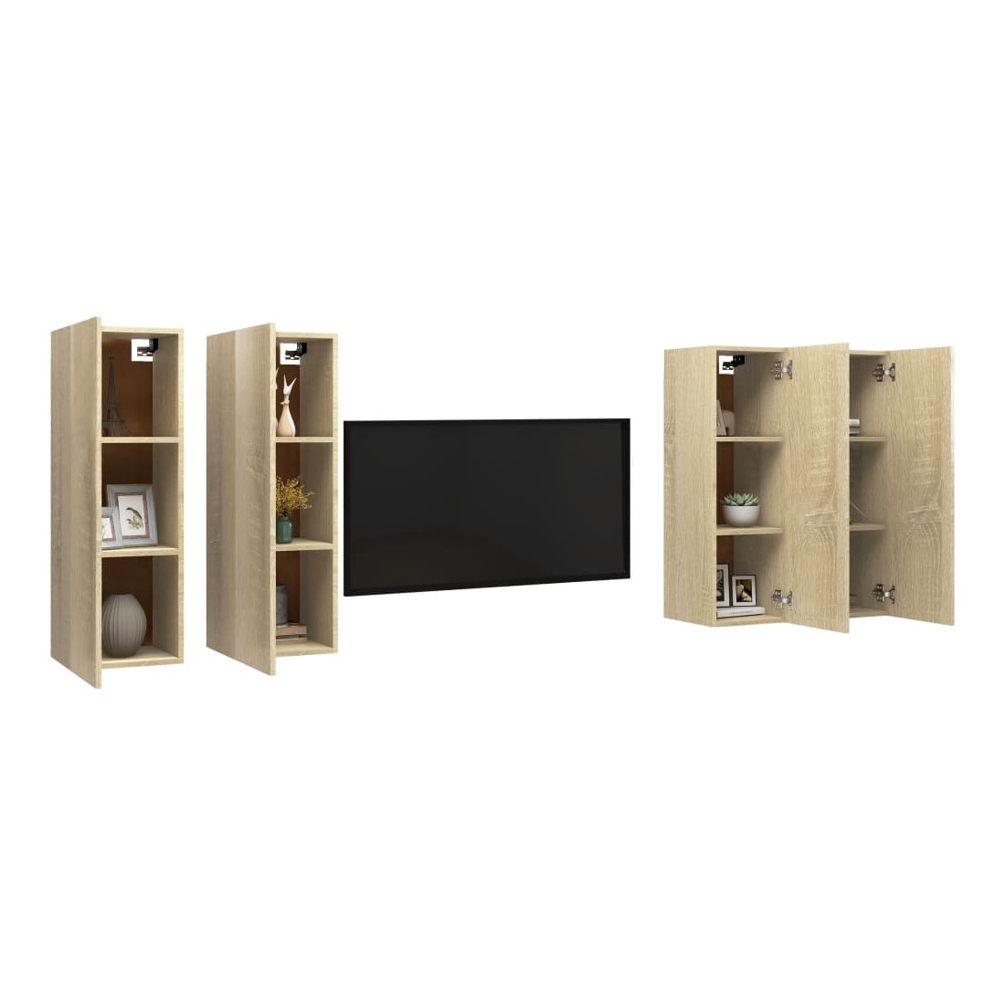 Cet ensemble de meuble TV suspendu est destiné à être le point de mire de votre salon avec un design à la fois tendance et pratique. Ces armoires TV murales sont en bois d’ingénierie, ce qui les rend robustes et stables. Chaque armoire dispose de 2 étagères, ce qui en fait un endroit idéal pour ranger tous vos livres, magazines, DVD ou autres objets. Ces armoires murales sont également faciles à nettoyer avec un chiffon humide.