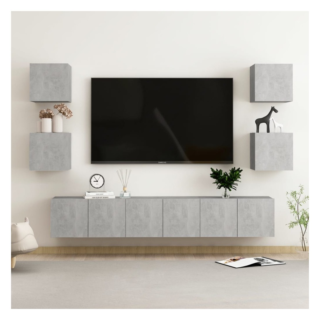 Cet ensemble de meuble TV robuste est destiné à être le point de mire de votre pièce avec un design à la fois tendance et pratique. Le meuble TV est fixé au mur, ce qui en fait un supplément intemporel à votre maison. Il offre de nombreux compartiments de rangement, ce qui en fait un endroit idéal pour stocker tous vos livres, magazines, DVD ou autres objets. Le meuble stéréo est facile à entretenir et à nettoyer avec un chiffon humide.
