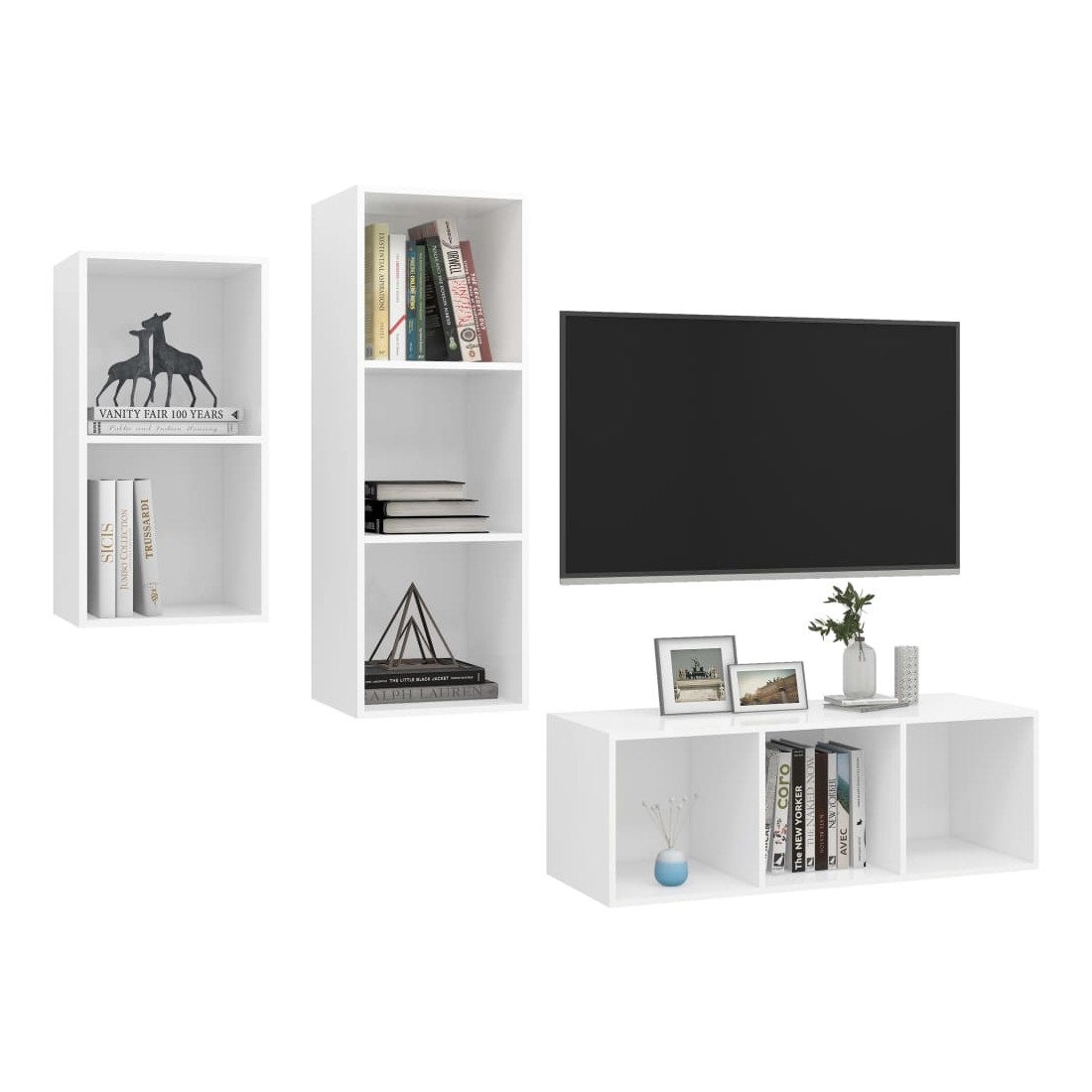 Équipé d'un grand espace de rangement pour organiser divers articles, cet ensemble de meuble TV suspendu sera certainement un supplément pratique et accrocheur dans votre maison. Le meuble TV est fixé au mur, ce qui en fait un supplément intemporel à votre maison. Cet ensemble d’armoire HiFi est idéal pour afficher ou garder bien organisés ou à portée de main tous les articles préférés. De plus, l’ensemble d’armoire stéréo est facile à nettoyer avec un chiffon humide.
