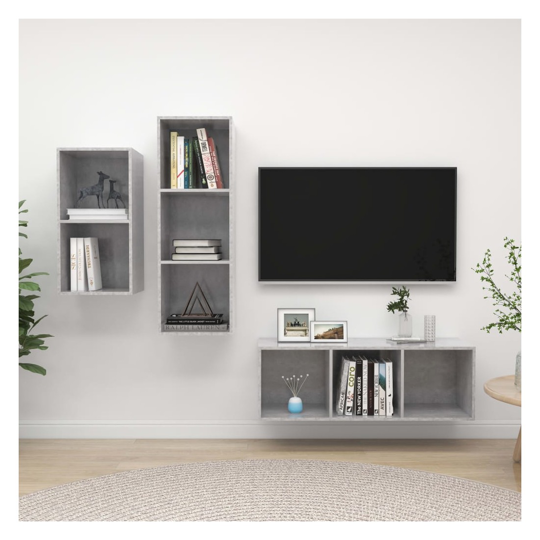 Équipé d'un grand espace de rangement pour organiser divers articles, cet ensemble de meuble TV suspendu sera certainement un supplément pratique et accrocheur dans votre maison. Le meuble TV est fixé au mur, ce qui en fait un supplément intemporel à votre maison. Cet ensemble d’armoire HiFi est idéal pour afficher ou garder bien organisés ou à portée de main tous les articles préférés. De plus, l’ensemble d’armoire stéréo est facile à nettoyer avec un chiffon humide.