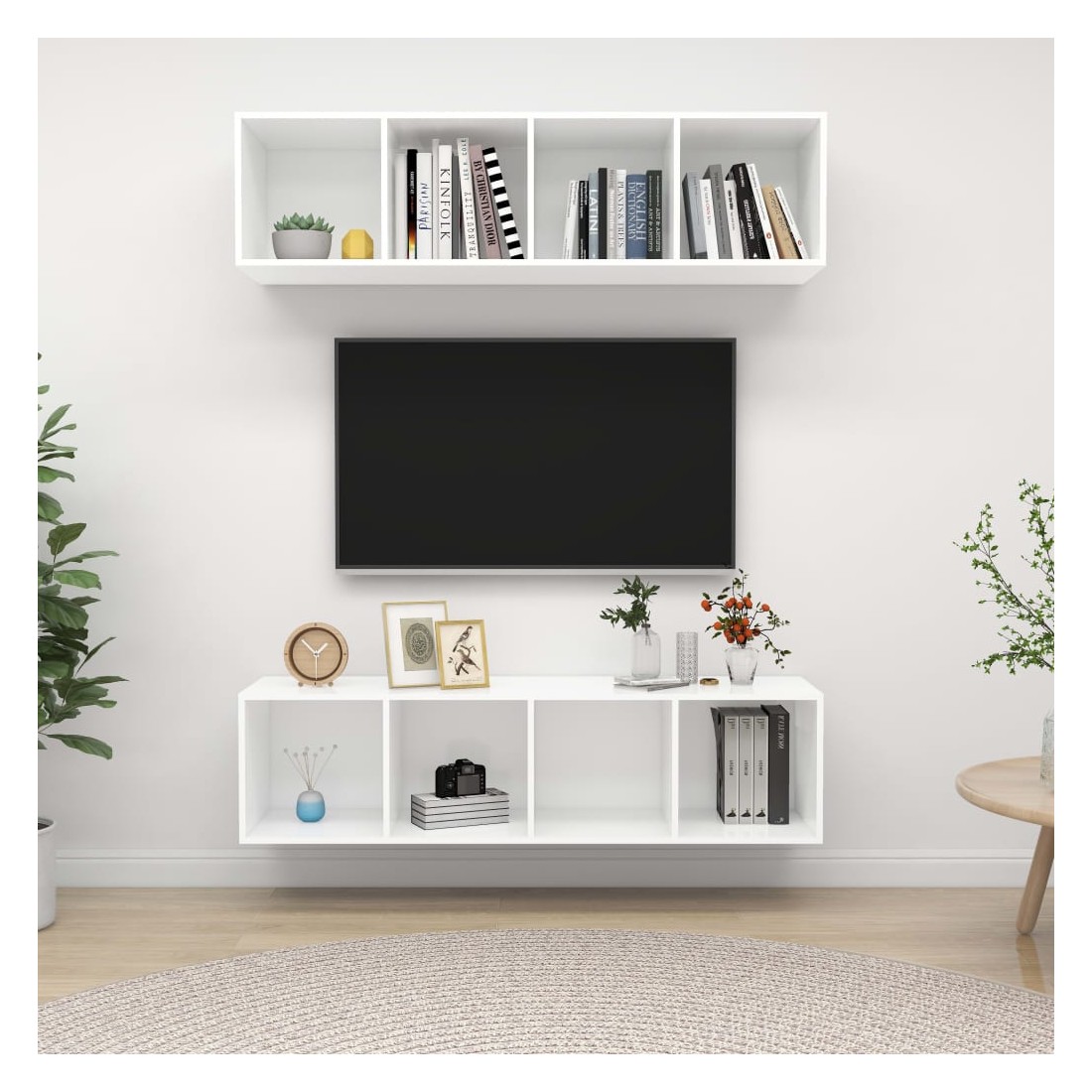 Équipé d'un grand espace de rangement pour organiser divers articles, cet ensemble de meuble TV mural sera certainement un supplément pratique et accrocheur dans votre maison. Ces meubles TV peuvent être accrochés au mur verticalement ou horizontalement selon vos préférences. Chaque armoire HiFi est équipée de 4 compartiments, vous pouvez donc afficher ou garder tous les objets que vous souhaitez bien organisés et à portée de main. De plus, les armoires stéréo sont faciles à nettoyer avec un chiffon humide.