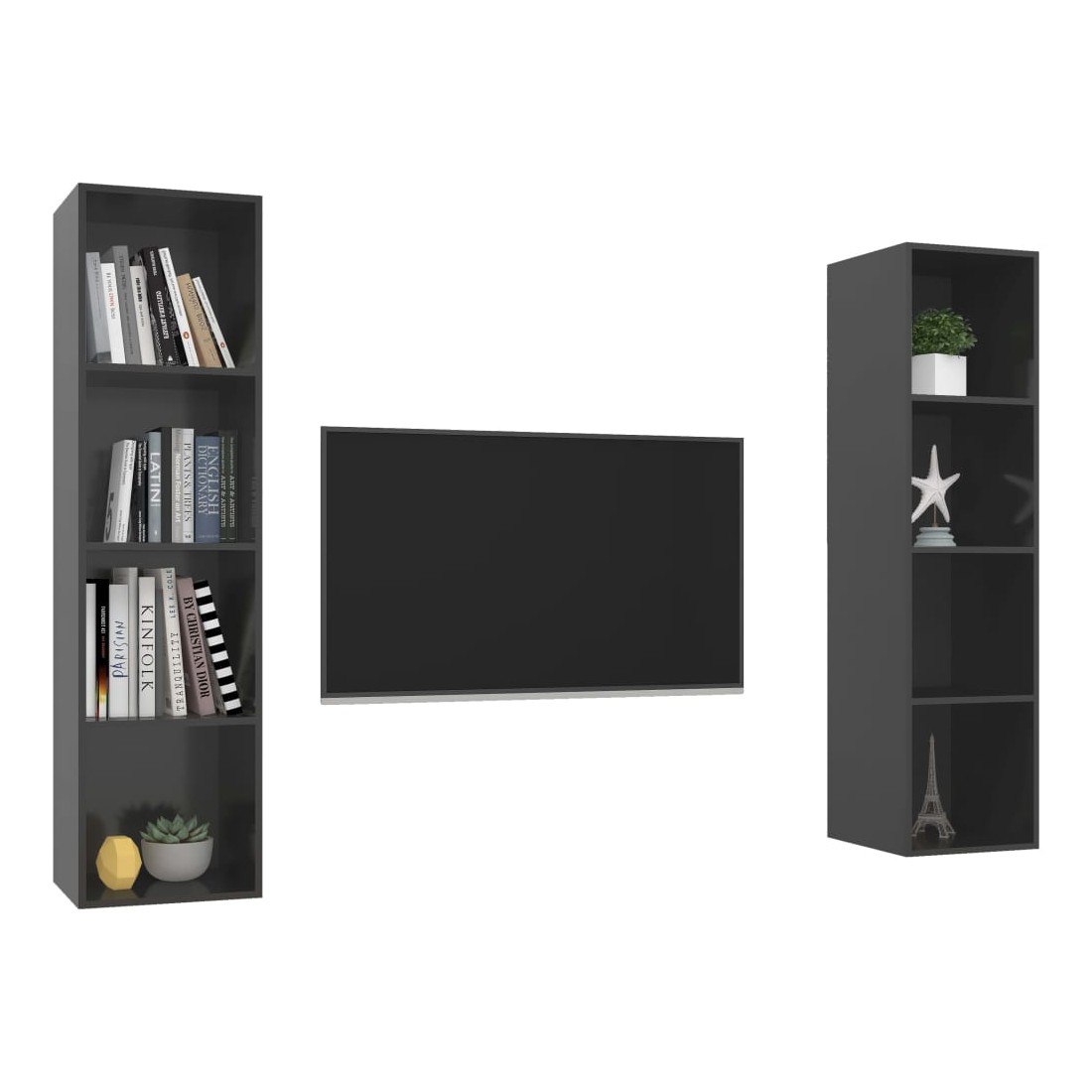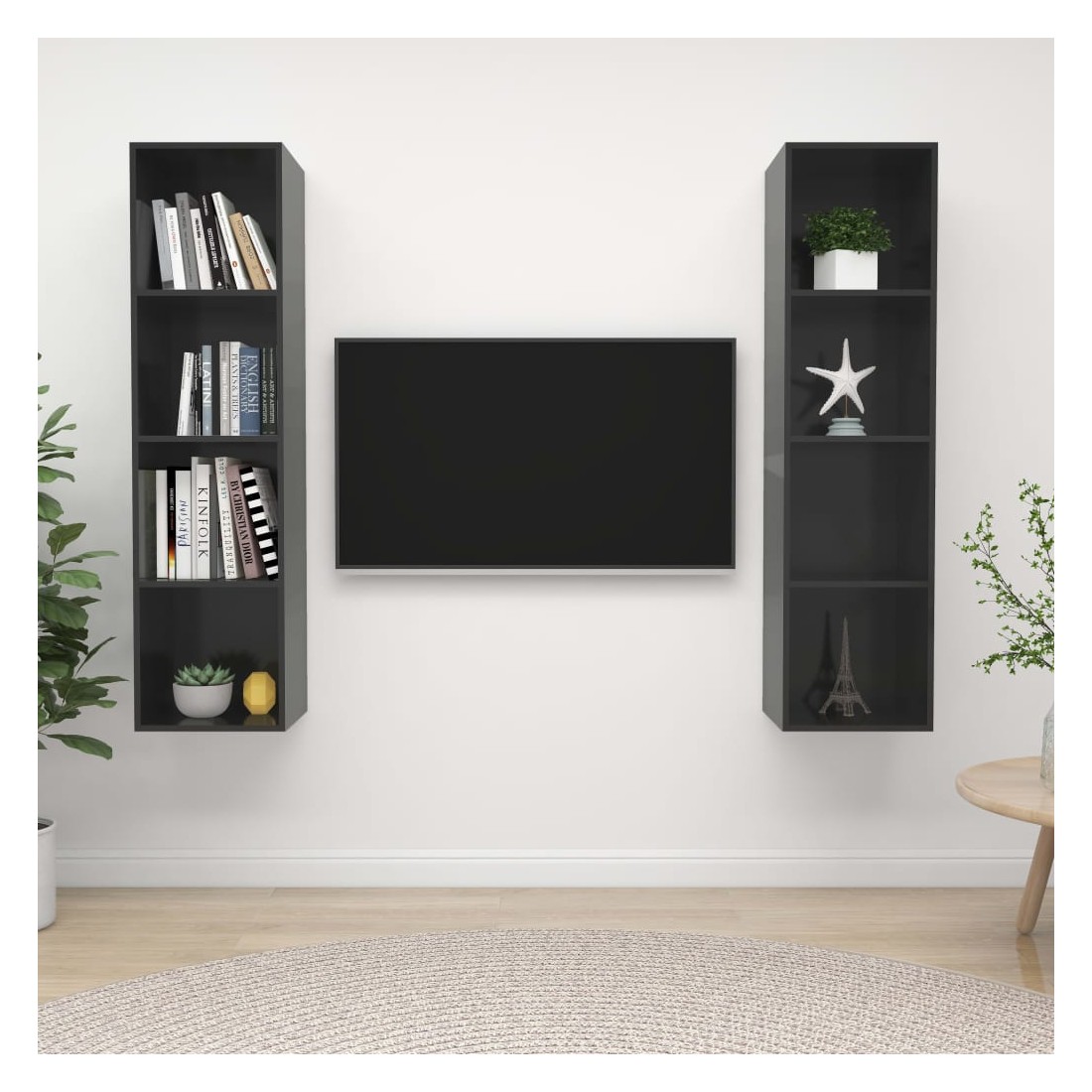 Meubles TV muraux 2 pcs Gris brillant Bois d'ingénierie