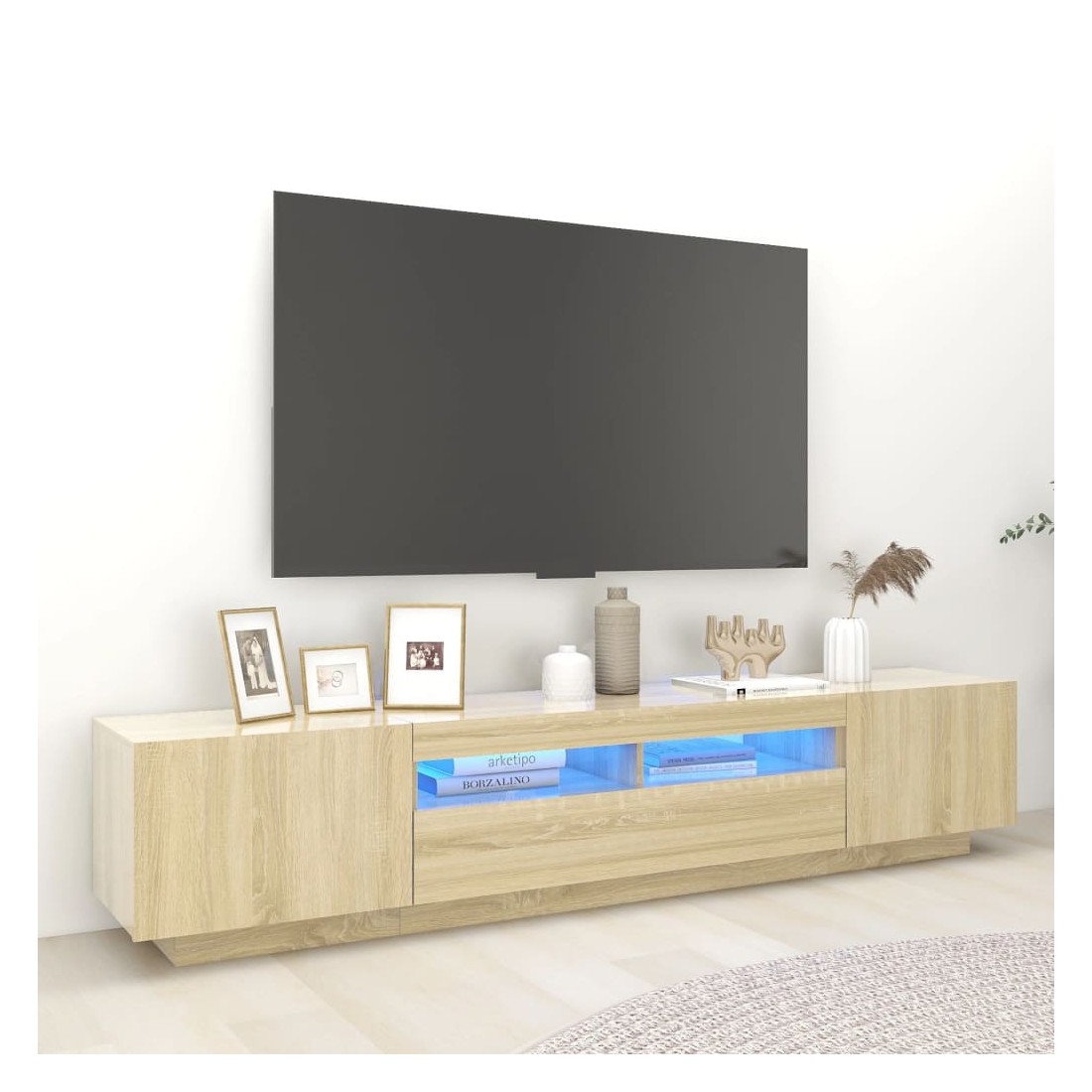 Meuble TV avec lumières LED Chêne sonoma 200x35x40 cm