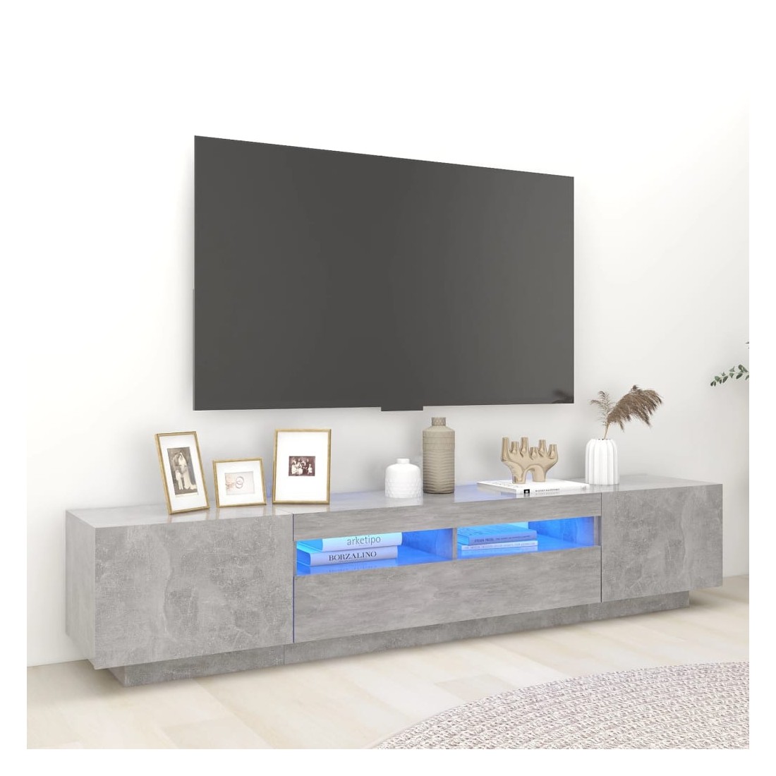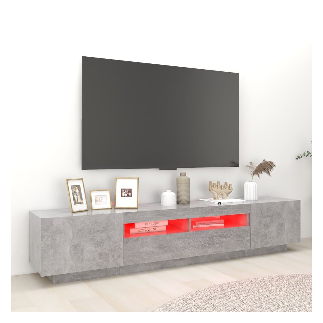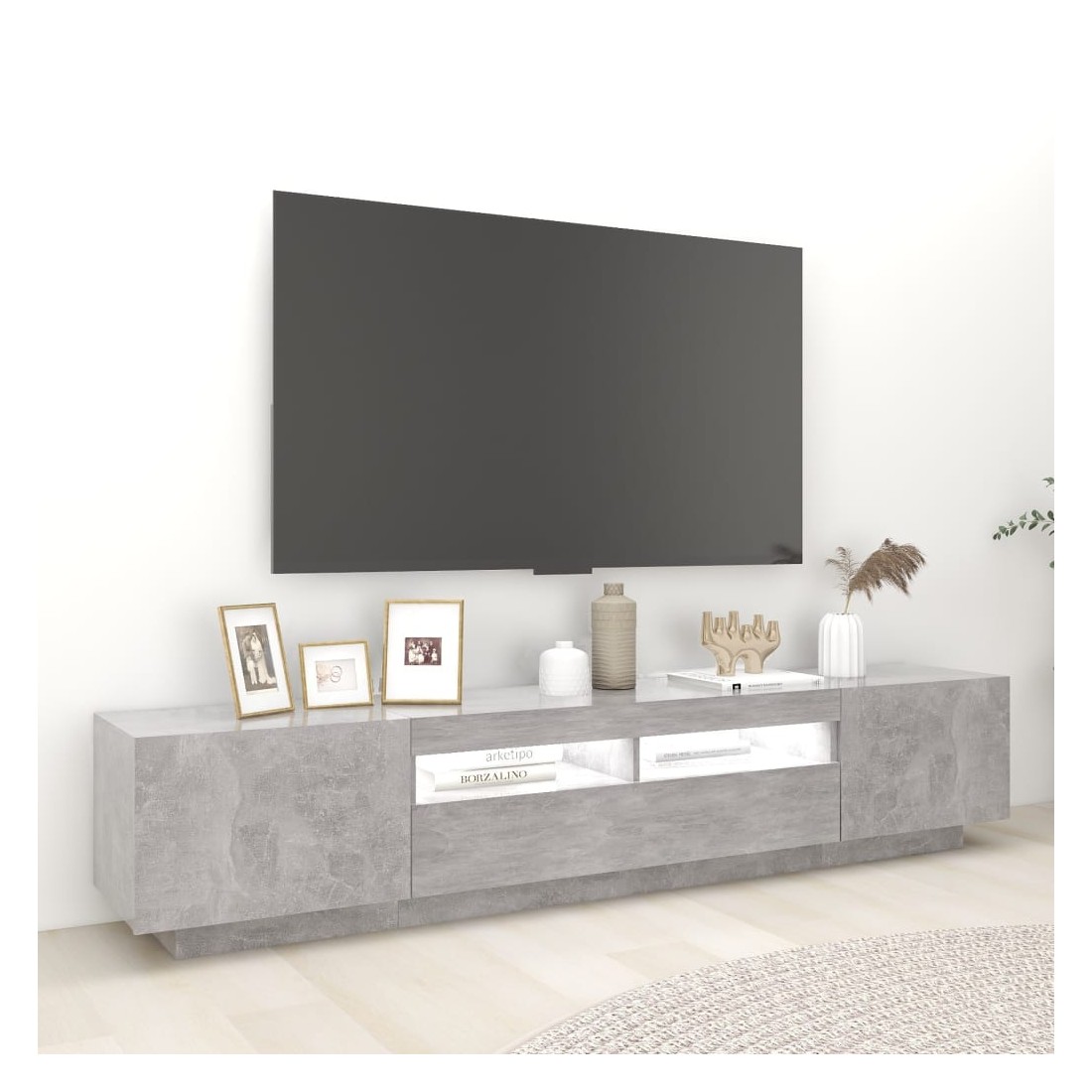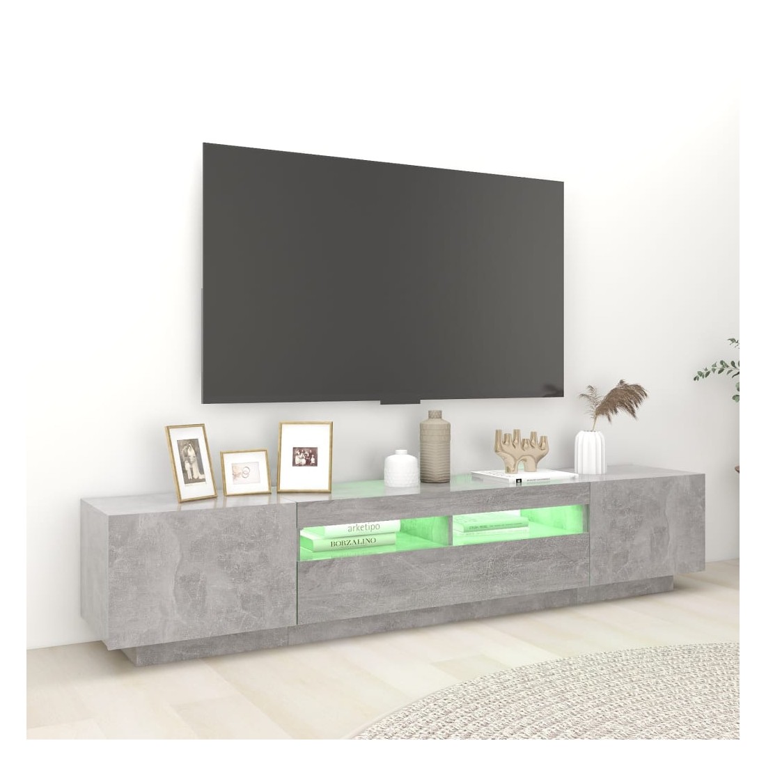 Meuble TV avec lumières LED Gris béton 200x35x40 cm