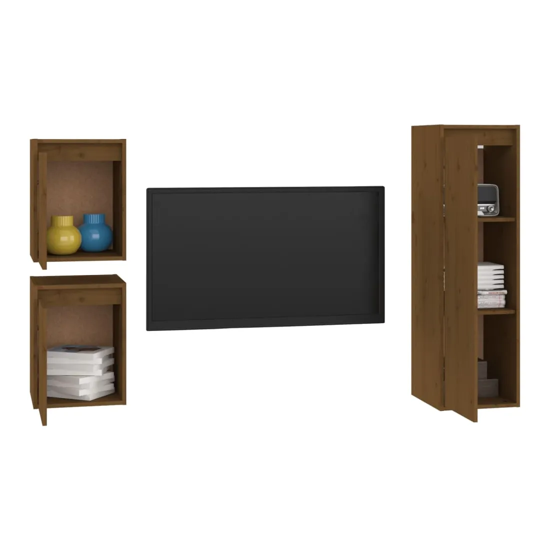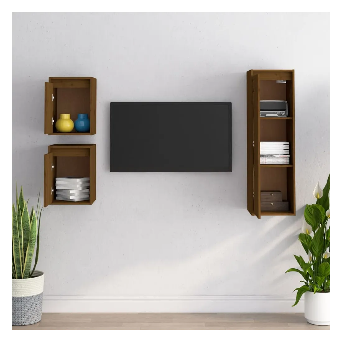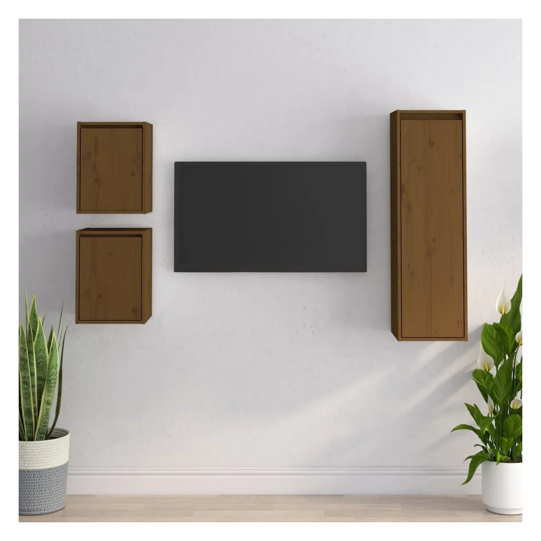 Ces meubles TV classiques sont conçus pour être le point de mire de votre pièce avec un design à la fois tendance et pratique. Ces armoires suspendues sont fabriquées en bois de pin massif, ce qui garantit leur solidité, durabilité et longévité. Les unités murales sont l'endroit idéal pour ranger des objets tels que des livres, des objets de collection, des bibelots, etc. Elles transforment un mur vide en une caractéristique de conception. De plus, les armoires flottantes sont faciles à nettoyer avec un chiffon humide. Veuillez noter : Les vis et les chevilles pour l'intérieur du mur ne sont pas incluses. Recherchez et utilisez des vis et des chevilles adaptées à vos murs. Si vous n'êtes pas sûr, demandez conseil à un professionnel. Lisez et suivez attentivement chaque étape de l'instruction.