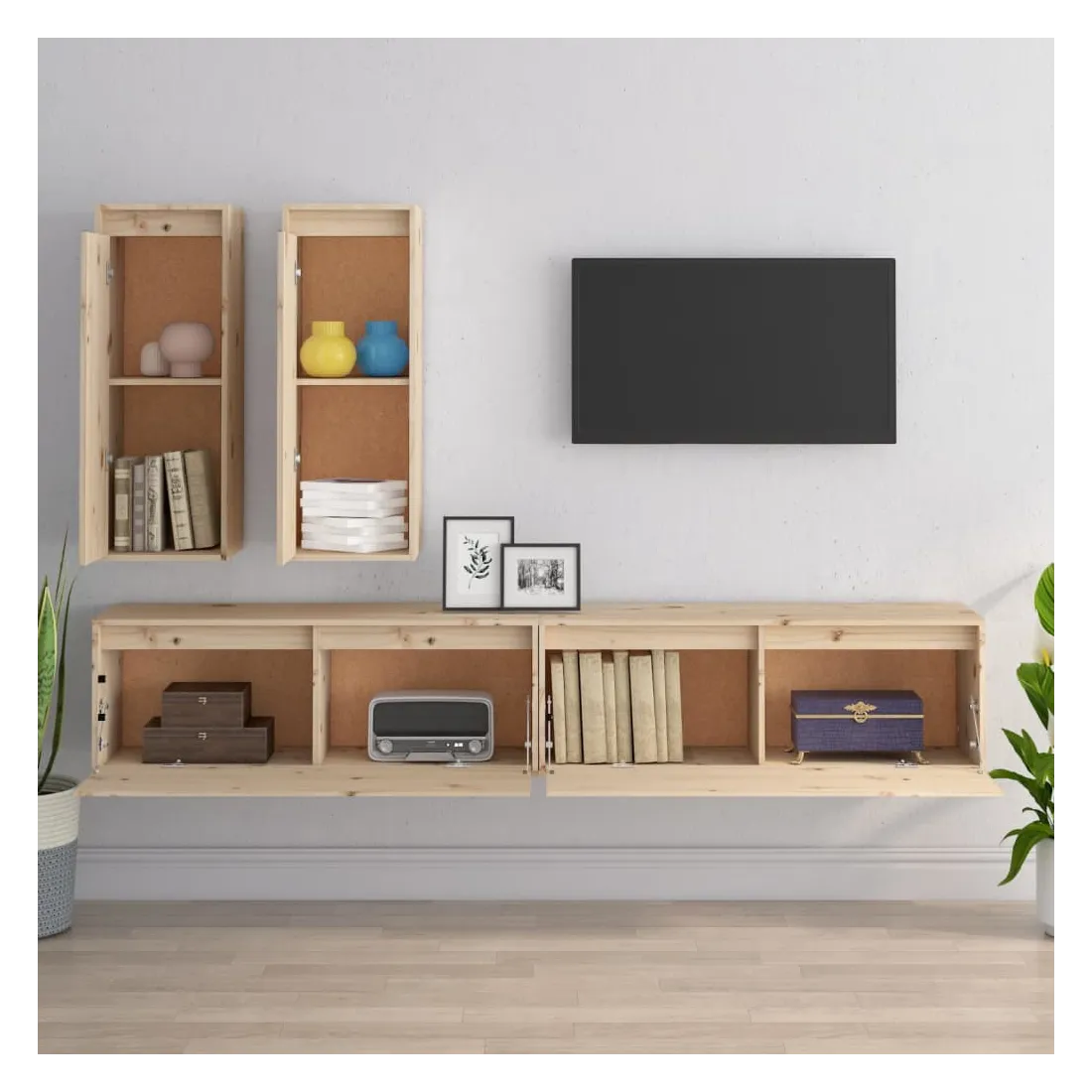 Ces meubles TV classiques sont conçus pour être le point de mire de votre pièce avec un design à la fois tendance et pratique. Ces armoires suspendues sont fabriquées en bois de pin massif, ce qui garantit leur solidité, durabilité et longévité. Les unités murales sont l'endroit idéal pour ranger des objets tels que des livres, des objets de collection, des bibelots, etc. Elles transforment un mur vide en une caractéristique de conception. De plus, les armoires flottantes sont faciles à nettoyer avec un chiffon humide. Veuillez noter : Les vis et les chevilles pour l'intérieur du mur ne sont pas incluses. Recherchez et utilisez des vis et des chevilles adaptées à vos murs. Si vous n'êtes pas sûr, demandez conseil à un professionnel. Lisez et suivez attentivement chaque étape de l'instr