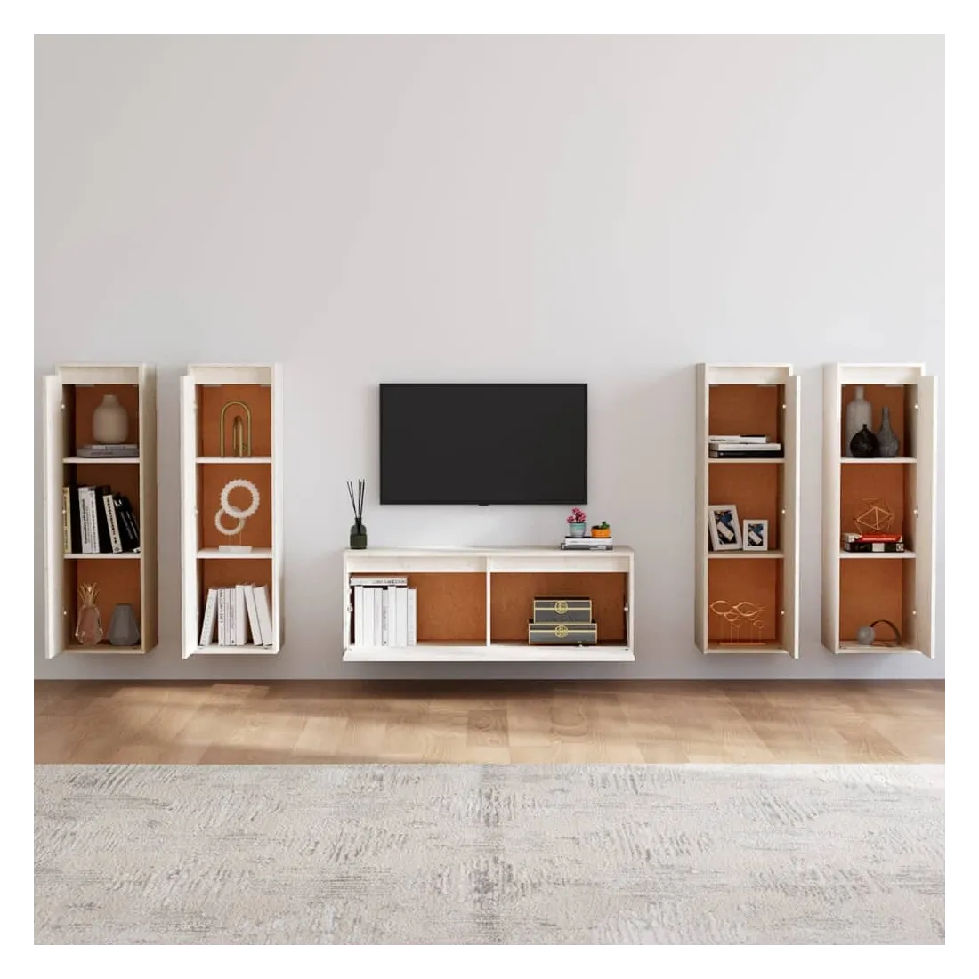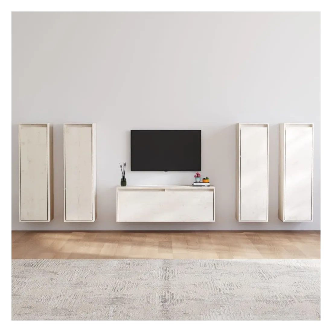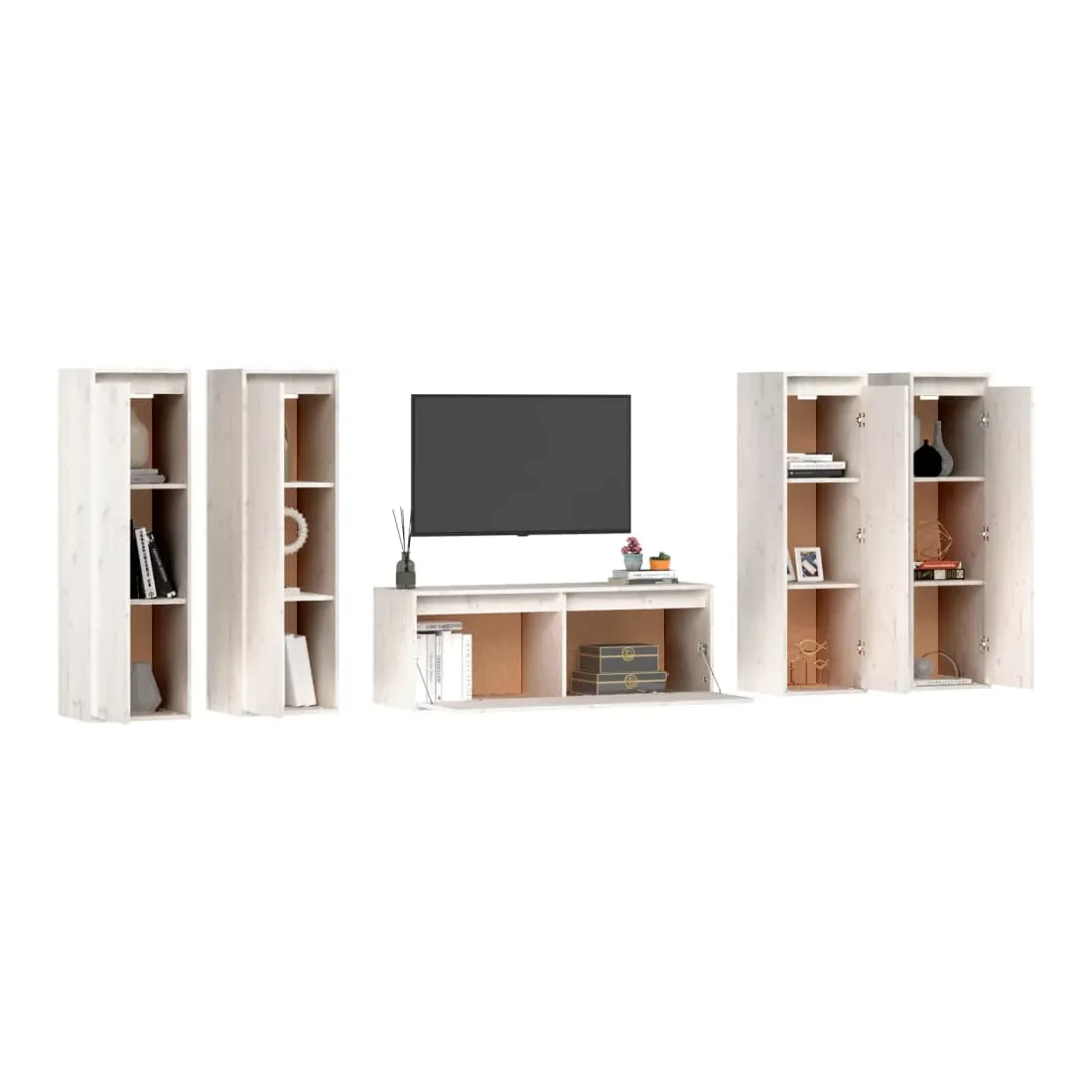 Meubles TV 5 pcs Blanc Bois massif de pin