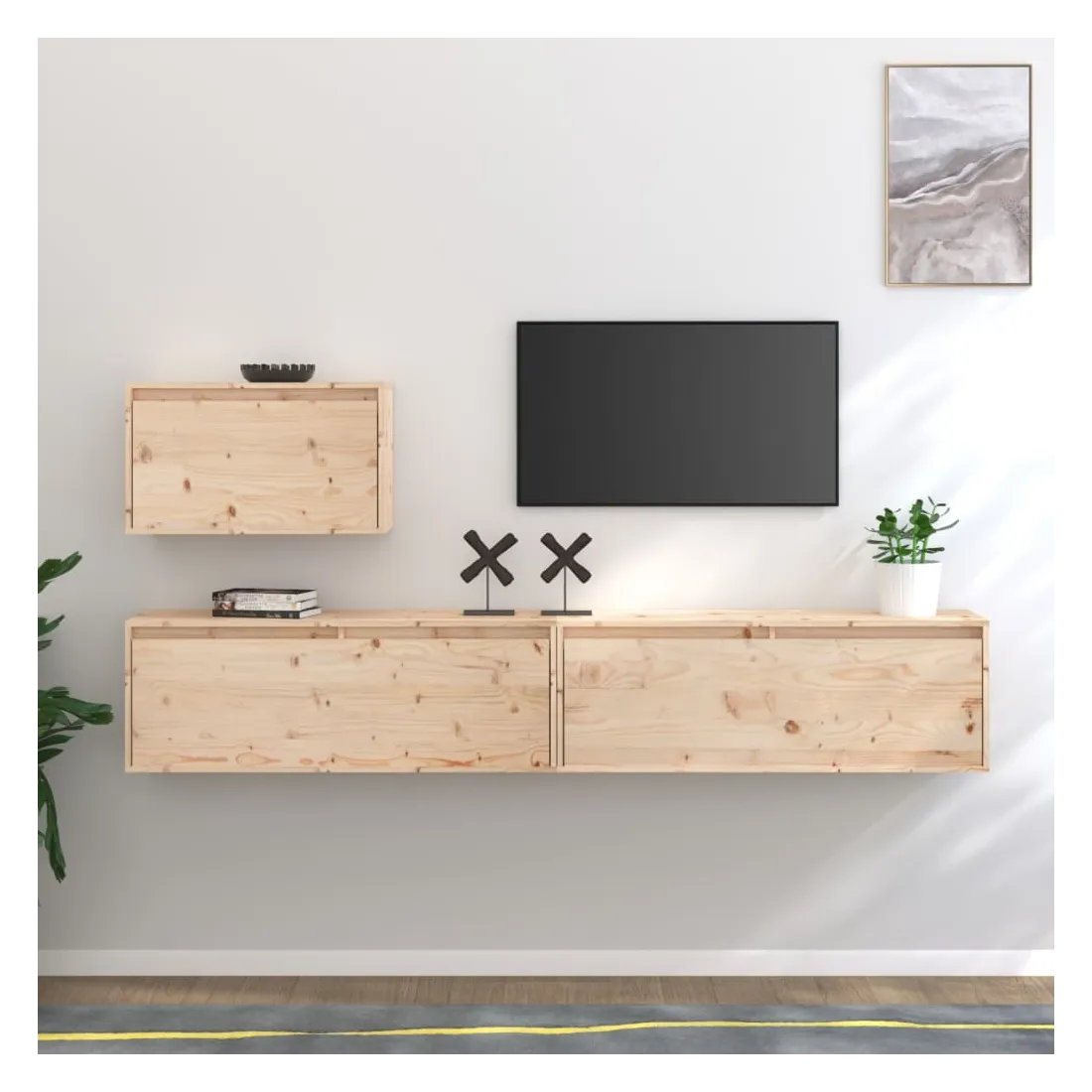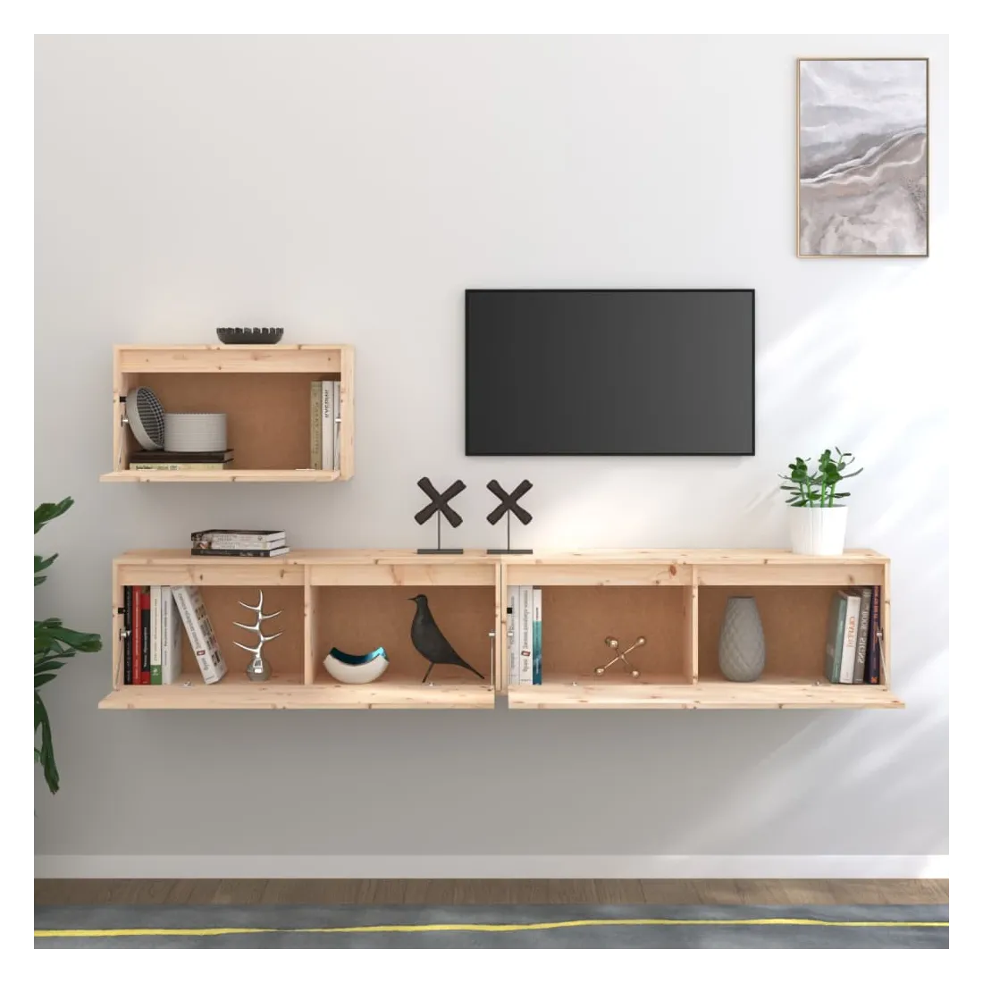 Ces meubles TV classiques sont conçus pour être le point de mire de votre pièce avec un design à la fois tendance et pratique. Ces armoires suspendues sont fabriquées en bois de pin massif, ce qui garantit leur solidité, durabilité et longévité. Les unités murales sont l'endroit idéal pour ranger des objets tels que des livres, des objets de collection, des bibelots, etc. Elles transforment un mur vide en une caractéristique de conception. De plus, les armoires flottantes sont faciles à nettoyer avec un chiffon humide. Veuillez noter : Les vis et les chevilles pour l'intérieur du mur ne sont pas incluses. Recherchez et utilisez des vis et des chevilles adaptées à vos murs. Si vous n'êtes pas sûr, demandez conseil à un professionnel. Lisez et suivez attentivement chaque étape de l'instr