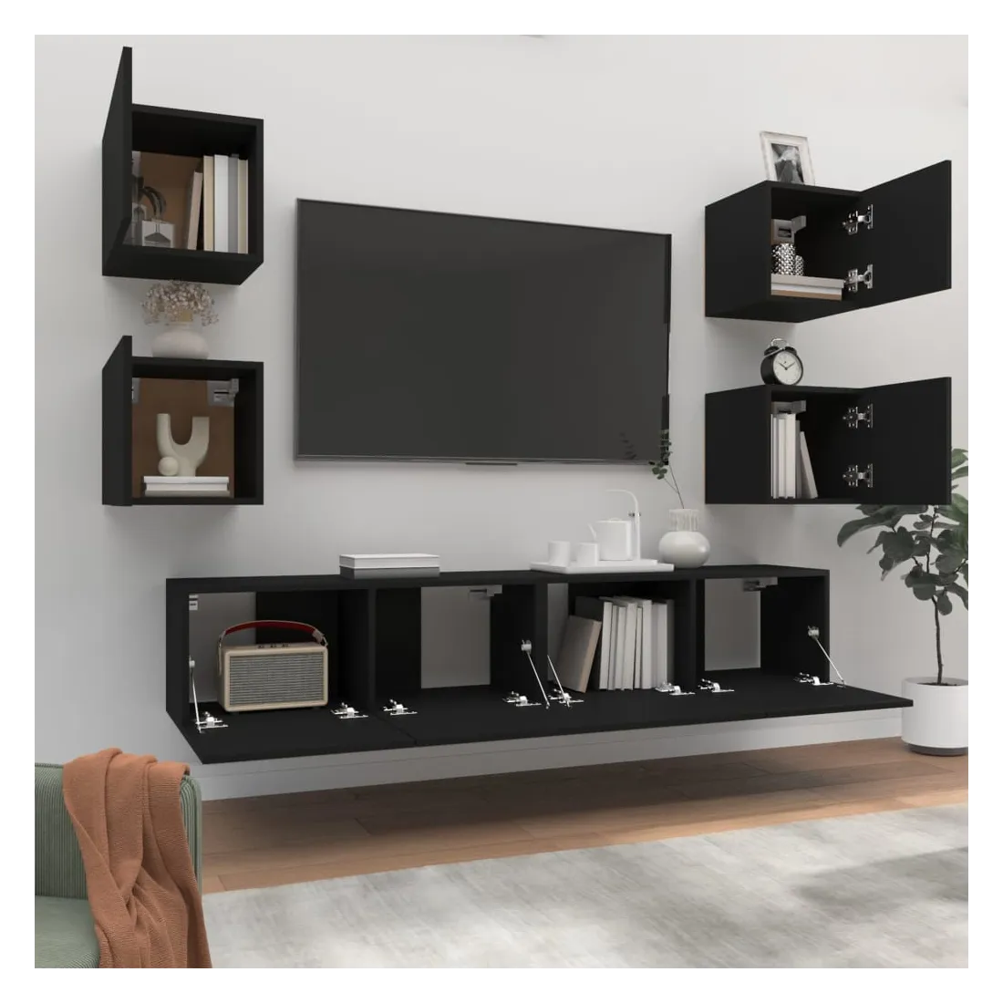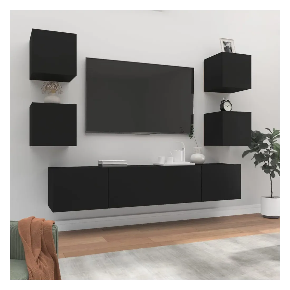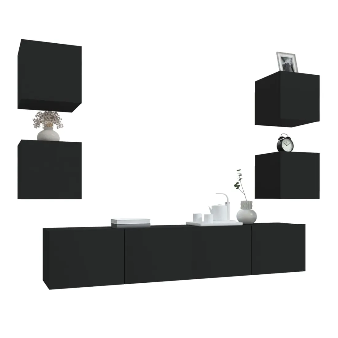 Ensemble de meubles TV 6 pcs Noir Bois d'ingénierie