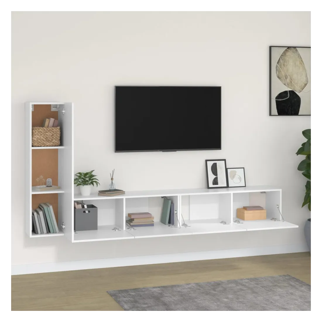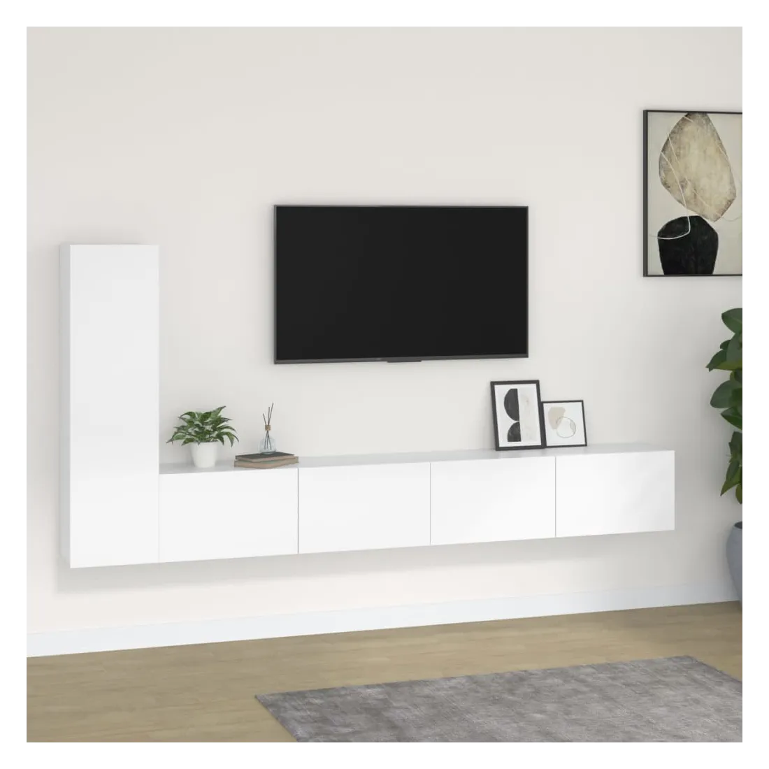 Cet ensemble de meubles TV classique est conçu pour être le point central de votre pièce, avec un design à la fois tendance et pratique. Matériau robuste : le bois d'ingénierie est d'une qualité exceptionnelle avec une surface lisse et présente également résistance, stabilité et résistance à l'humidité. Fabriqués en bois d'ingénierie, ces meubles TV sont faciles à nettoyer.Grand espace de rangement : ces meubles TV offrent un grand espace de rangement pour garder tous vos magazines, DVD et autres articles bien organisés.Fonction murale : l'armoire multimédia ne prend pas de place au sol. Vous pouvez la suspendre facilement au mur.Portes pratique : gardez vos essentiels à l'abri de la poussière en les cachant derrière la porte de l’unité multimédia. Remarque :Les vis et les chevilles pour l'intérieur du mur ne sont pas incluses. Recherchez et utilisez des vis et des chevilles adaptées à vos murs. Si vous n'êtes pas sûr, demandez conseil à un professionnel. Lisez et suivez attentivement chaque étape des instructions.Chaque produit est livré avec un manuel de montage dans la boîte pour un montage facile.