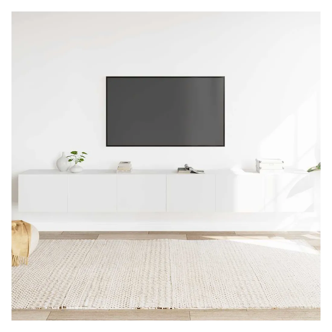 Cet ensemble de meubles TV classique est conçu pour être le point central de votre pièce, avec un design à la fois tendance et pratique. Matériau robuste : le bois d'ingénierie est d'une qualité exceptionnelle avec une surface lisse et présente également résistance, stabilité et résistance à l'humidité.Grand espace de rangement : l'ensemble de meubles TV offre un grand espace de rangement pour garder tous vos magazines, DVD et autres articles bien organisés.Design mural : le meuble TV ne prend pas de place au sol. Vous pouvez l'accrocher au mur facilement. Remarque :Les vis et les chevilles pour l'intérieur du mur ne sont pas incluses. Recherchez et utilisez des vis et des chevilles adaptées à vos murs. Si vous n'êtes pas sûr, demandez conseil à un professionnel. Lisez et suivez attentivement chaque étape des instructions.Chaque produit est livré avec un manuel de montage dans la boîte pour un montage facile.