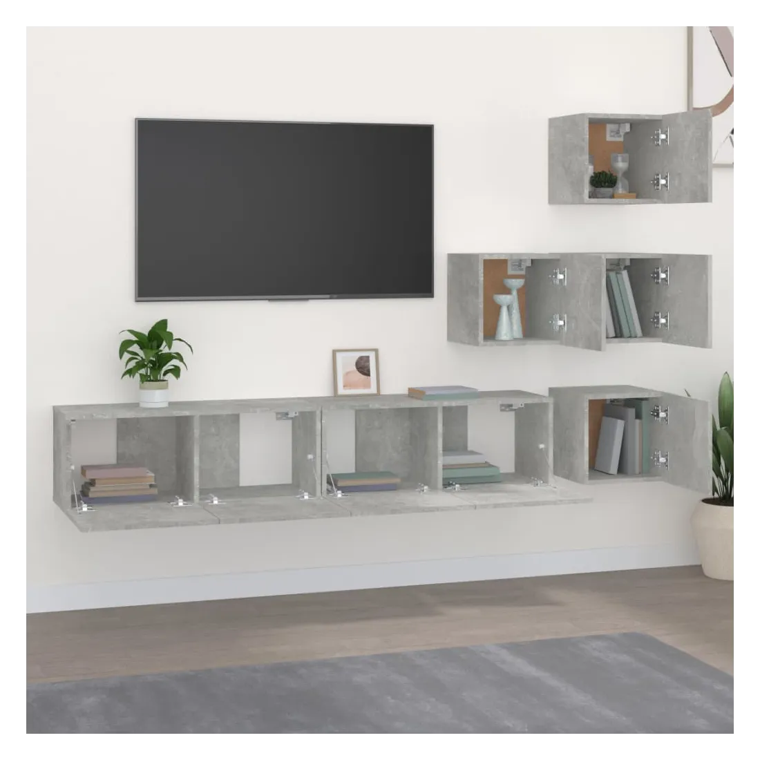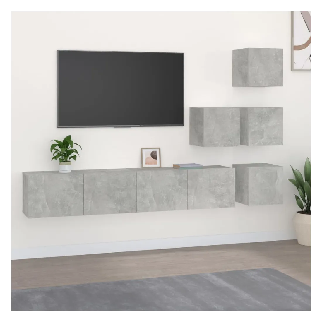 Meuble TV mural Gris béton Bois d'ingénierie