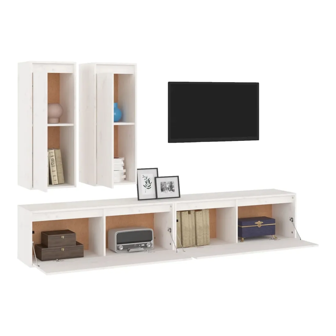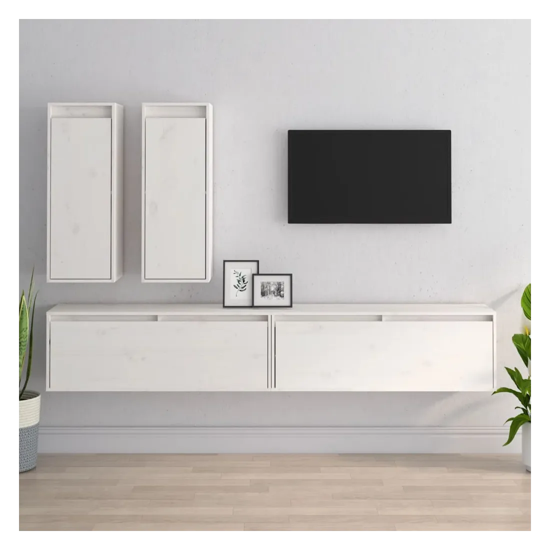 Meubles TV 4 pcs Blanc Bois massif de pin