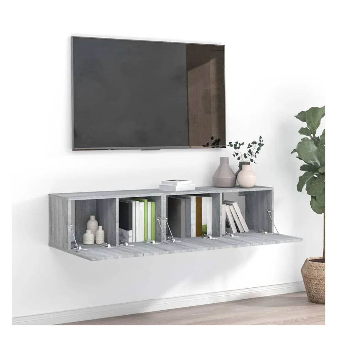 Cet ensemble de meubles TV est un supplément décoratif ainsi que pratique à votre décoration. Matériau robuste : le bois d'ingénierie est d'une qualité exceptionnelle avec une surface lisse et présente également résistance, stabilité et résistance à l'humidité.Rangement spacieux : l'ensemble de meubles TV suspendus offre un grand espace de rangement pour stocker vos télécommandes, magazines, DVD ou autres objets.Style moderne : cet ensemble de meuble Hifi ajoute un style moderne à votre intérieur existant ! Le design moderne présente des lignes épurées, des looks minimalistes et de la lumière naturelle dans le cadre du style de design d'intérieur. Remarque :Les vis et les chevilles pour l'intérieur du mur ne sont pas incluses. Recherchez et utilisez des vis et des chevilles adaptées à vos murs. Si vous n'êtes pas sûr, demandez conseil à un professionnel. Lisez et suivez attentivement chaque étape des instructions.Chaque produit est livré avec un manuel de montage dans la boîte pour un montage facile.