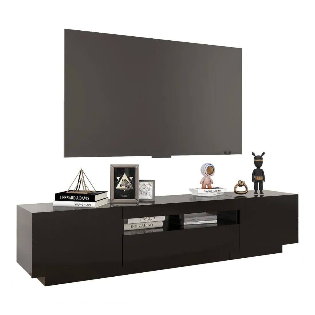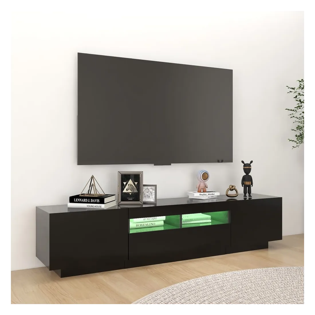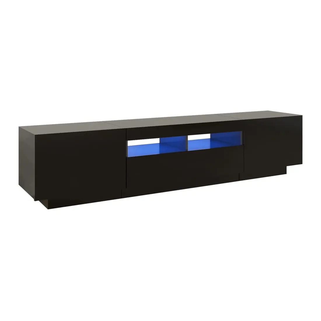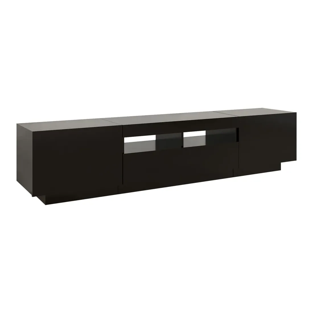 Avec un design à la fois tendance et pratique, ce meuble TV avec éclairage LED deviendra certainement un point central de votre pièce. La construction robuste de ce meuble HiFi le rend très durable. Il vous reste amplement d’espace pour garder votre lecteur DVD, votre console de jeu, votre appareil de streaming et vos supports multimédia bien organisés. Ce meuble TV dispose de lumières LED RVB, qui a différents menus pour changer la couleur des lumières et de laisser la couleur s’ajuster automatiquement. Les lumières LED soulignent l'aspect moderne et contribuent à l'impression de tendance. De plus, ce meuble TV est facile à nettoyer avec un chiffon humide. Remarque : ce meuble TV contient 1 meuble avec des lumières LED et 1 meuble qui peut être séparé en 2 petits meubles.Ce produit est doté d'un connecteur USB, mais la source d'alimentation certifiée de USB 5V n'est pas incluse.