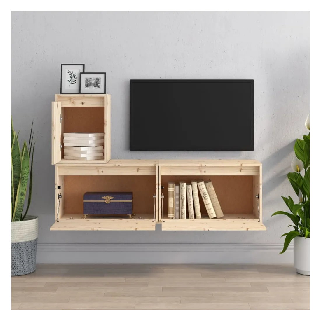 Ces meubles TV classiques sont conçus pour être le point de mire de votre pièce avec un design à la fois tendance et pratique. Ces armoires suspendues sont fabriquées en bois de pin massif, ce qui garantit leur solidité, durabilité et longévité. Les unités murales sont l'endroit idéal pour ranger des objets tels que des livres, des objets de collection, des bibelots, etc. Elles transforment un mur vide en une caractéristique de conception. De plus, les armoires flottantes sont faciles à nettoyer avec un chiffon humide. Veuillez noter : Les vis et les chevilles pour l'intérieur du mur ne sont pas incluses. Recherchez et utilisez des vis et des chevilles adaptées à vos murs. Si vous n'êtes pas sûr, demandez conseil à un professionnel. Lisez et suivez attentivement chaque étape de l'instruction.