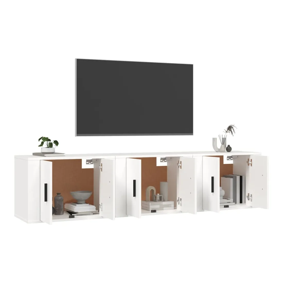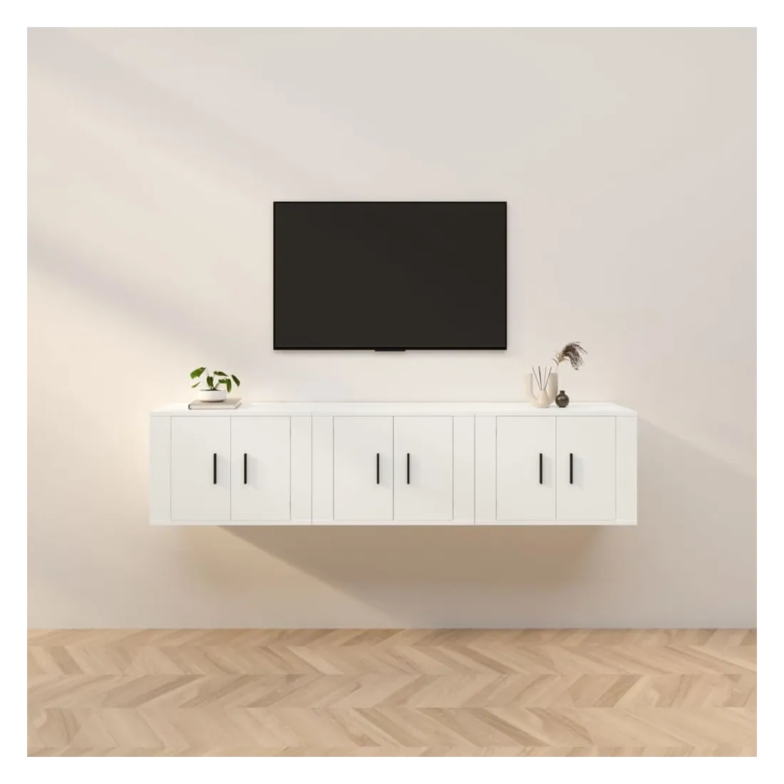 Ces meubles TV muraux présentent un design élégant et classique, ce qui en fait une extension décorative et pratique de votre décor. Matériau durable : le bois d'ingénierie est d'une qualité exceptionnelle avec une surface lisse et présente également résistance, stabilité et résistance à l'humidité.Grand espace de rangement : le meuble TV a un compartiment, offrant un grand espace de rangement pour vous permettre d'organiser des articles comme un lecteur multimédia, des magazines et d'autres choses.Fonction de montage au mur : le meuble TV ne prend pas de place au sol. Vous pouvez l'accrocher au mur facilement.Dessus robuste : le dessus de l'armoire multimédia est un endroit idéal pour ranger des objets tels que des livres et des ornements.Portes pratique : gardez vos essentiels à l'abri de la poussière en les cachant derrière la porte de l’unité multimédia. Bon à savoir :Pour faciliter au maximum le montage, chaque produit est livré avec des instructions.Les vis et les chevilles pour l'intérieur du mur ne sont pas incluses. Nous vous conseillons de trouver et d'utiliser des vis et des chevilles adaptées spécifiquement à vos murs. Si vous n'êtes pas sûr, vous pouvez consulter un professionnel. Veuillez lire et suivre chaque étape des instructions.