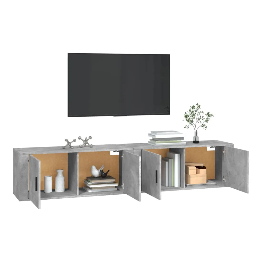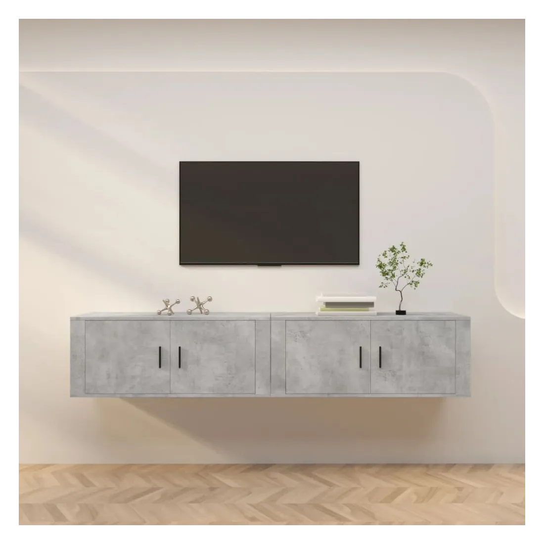 Ces meubles TV muraux présentent un design élégant et classique, ce qui en fait une extension décorative et pratique de votre décor. Matériau durable : le bois d'ingénierie est d'une qualité exceptionnelle avec une surface lisse et présente également résistance, stabilité et résistance à l'humidité.Grand espace de rangement : le meuble TV a un compartiment, offrant un grand espace de rangement pour vous permettre d'organiser des articles comme un lecteur multimédia, des magazines et d'autres choses.Fonction de montage au mur : le meuble TV ne prend pas de place au sol. Vous pouvez l'accrocher au mur facilement.Dessus robuste : le dessus de l'armoire multimédia est un endroit idéal pour ranger des objets tels que des livres et des ornements.Portes pratique : gardez vos essentiels à l'abri de la poussière en les cachant derrière la porte de l’unité multimédia. Bon à savoir :Pour faciliter au maximum le montage, chaque produit est livré avec des instructions.Les vis et les chevilles pour l'intérieur du mur ne sont pas incluses. Nous vous conseillons de trouver et d'utiliser des vis et des chevilles adaptées spécifiquement à vos murs. Si vous n'êtes pas sûr, vous pouvez consulter un professionnel. Veuillez lire et suivre chaque étape des instructions.