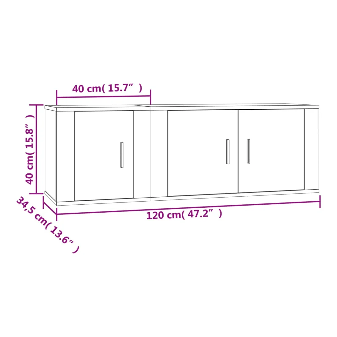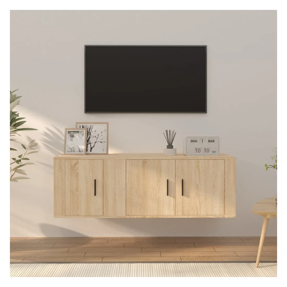 vidaXLCet ensemble de meubles TV classique est conçu pour être le point central de votre pièce, avec un design à la fois tendance et pratique. Matériau robuste : le bois d'ingénierie est d'une qualité exceptionnelle avec une surface lisse et présente également résistance, stabilité et résistance à l'humidité. Fabriqués en bois d'ingénierie, ces meubles TV sont faciles à nettoyer.Grand espace de rangement : ces meubles TV offrent un grand espace de rangement pour garder tous vos magazines, DVD et autres articles bien organisés.Fonction murale : ces armoires multimédias ne prennent pas de place au sol. Vous pouvez facilement les accrocher au mur.Portes pratique : gardez vos essentiels à l'abri de la poussière en les cachant derrière les portes des meubles multimédia. Bon à savoir :Pour faciliter au maximum le montage, chaque produit est livré avec des instructions.Les vis et les chevilles pour l'intérieur du mur ne sont pas incluses. Nous vous conseillons de trouver et d'utiliser des vis et des chevilles adaptées spécifiquement à vos murs. Si vous n'êtes pas sûr, vous pouvez consulter un professionnel. Veuillez lire et suivre chaque étape des instructions.