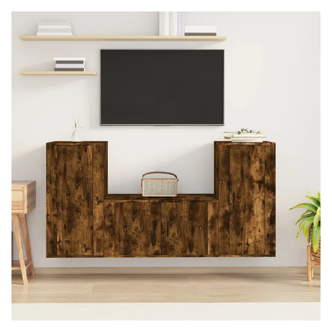 Cet ensemble de meubles TV classique est conçu pour être le point central de votre pièce, avec un design à la fois tendance et pratique. Matériau robuste : le bois d'ingénierie est d'une qualité exceptionnelle avec une surface lisse et présente également résistance, stabilité et résistance à l'humidité.Grand espace de rangement : l'ensemble de meubles TV offre un grand espace de rangement pour garder tous vos magazines, DVD et autres articles bien organisés.Design mural : le meuble TV ne prend pas de place au sol. Vous pouvez l'accrocher au mur facilement. Bon à savoir :Pour faciliter au maximum le montage, chaque produit est livré avec des instructions.Les vis et les chevilles pour l'intérieur du mur ne sont pas incluses. Nous vous conseillons de trouver et d'utiliser des vis et des chevilles adaptées spécifiquement à vos murs. Si vous n'êtes pas sûr, vous pouvez consulter un professionnel. Veuillez lire et suivre chaque étape des instructions.
