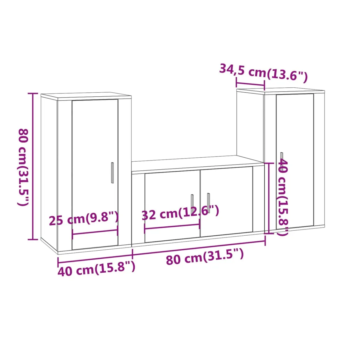 - 1 x meuble TV : 80 x 34,5 x 40 cm (L x l x H)