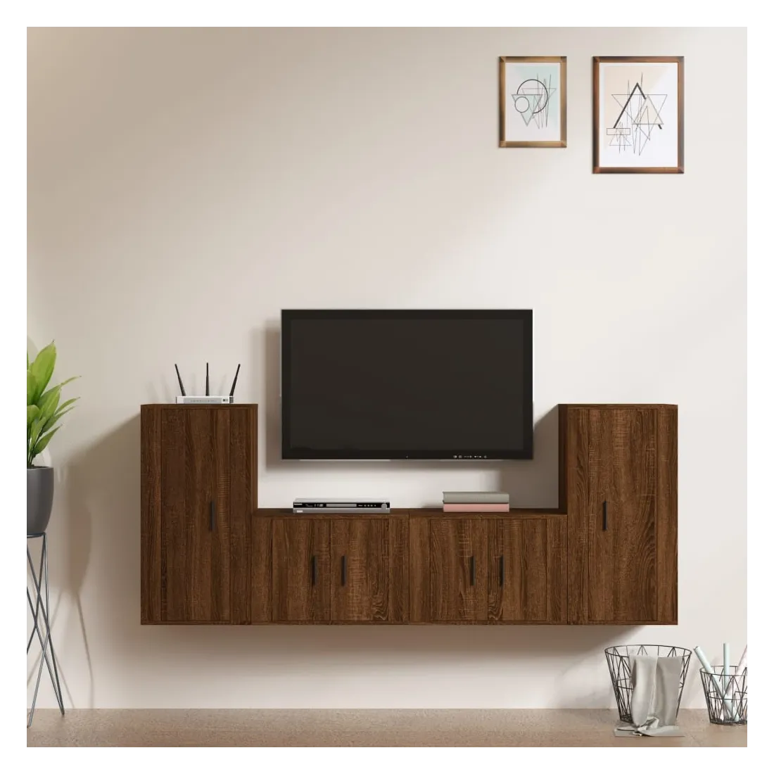 vidaXLCet ensemble de meubles TV classique est conçu pour être le point central de votre pièce, avec un design à la fois tendance et pratique. Matériau robuste : le bois d'ingénierie est d'une qualité exceptionnelle avec une surface lisse et présente également résistance, stabilité et résistance à l'humidité.Grand espace de rangement : l'ensemble de meubles TV offre un grand espace de rangement pour garder tous vos magazines, DVD et autres articles bien organisés.Design mural : le meuble TV ne prend pas de place au sol. Vous pouvez l'accrocher au mur facilement. Bon à savoir :Pour faciliter au maximum le montage, chaque produit est livré avec des instructions.Les vis et les chevilles pour l'intérieur du mur ne sont pas incluses. Nous vous conseillons de trouver et d'utiliser des vis et des chevilles adaptées spécifiquement à vos murs. Si vous n'êtes pas sûr, vous pouvez consulter un professionnel. Veuillez lire et suivre chaque étape des instructions.