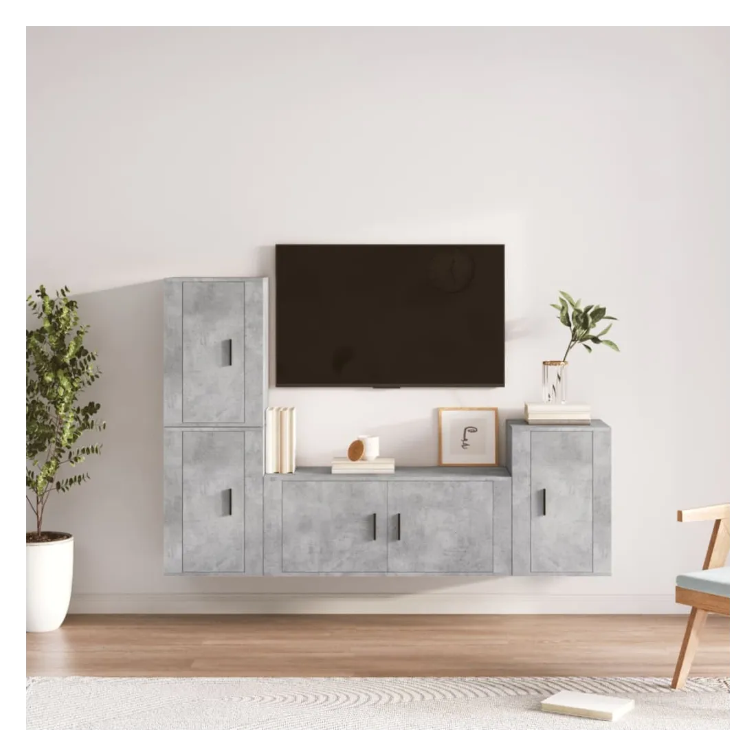 Cet ensemble de meubles TV classique est conçu pour être le point central de votre pièce, avec un design à la fois tendance et pratique. Matériau robuste : le bois d'ingénierie est d'une qualité exceptionnelle avec une surface lisse et présente également résistance, stabilité et résistance à l'humidité.Grand espace de rangement : l'ensemble de meubles TV offre un grand espace de rangement pour garder tous vos magazines, DVD et autres articles bien organisés.Design mural : le meuble TV ne prend pas de place au sol. Vous pouvez l'accrocher au mur facilement. Bon à savoir :Pour faciliter au maximum le montage, chaque produit est livré avec des instructions.Les vis et les chevilles pour l'intérieur du mur ne sont pas incluses. Nous vous conseillons de trouver et d'utiliser des vis et des chevilles adaptées spécifiquement à vos murs. Si vous n'êtes pas sûr, vous pouvez consulter un professionnel. Veuillez lire et suivre chaque étape des instructions.