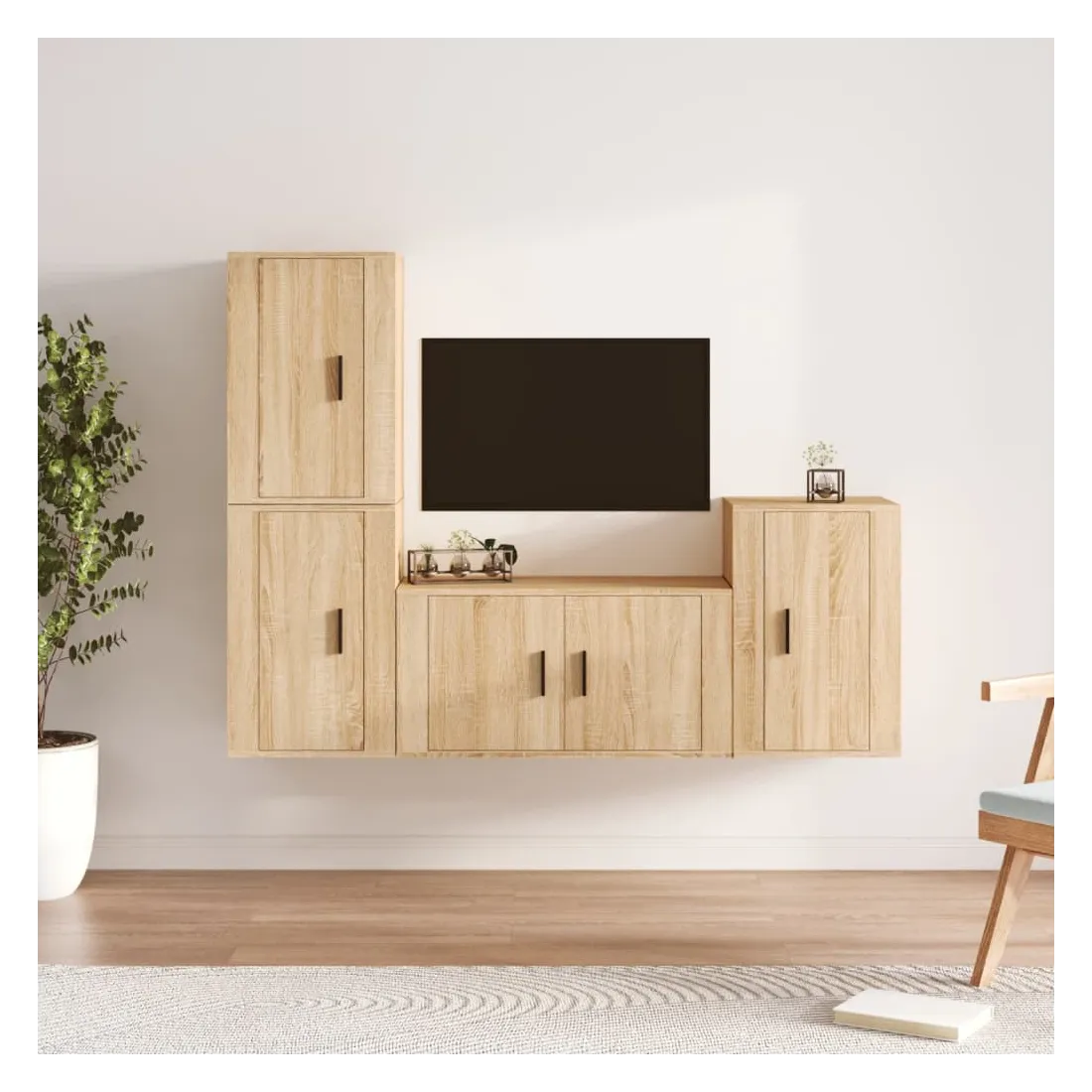 Cet ensemble de meubles TV classique est conçu pour être le point central de votre pièce, avec un design à la fois tendance et pratique. Matériau robuste : le bois d'ingénierie est d'une qualité exceptionnelle avec une surface lisse et présente également résistance, stabilité et résistance à l'humidité.Grand espace de rangement : l'ensemble de meubles TV offre un grand espace de rangement pour garder tous vos magazines, DVD et autres articles bien organisés.Design mural : le meuble TV ne prend pas de place au sol. Vous pouvez l'accrocher au mur facilement. Bon à savoir :Pour faciliter au maximum le montage, chaque produit est livré avec des instructions.Les vis et les chevilles pour l'intérieur du mur ne sont pas incluses. Nous vous conseillons de trouver et d'utiliser des vis et des chevilles adaptées spécifiquement à vos murs. Si vous n'êtes pas sûr, vous pouvez consulter un professionnel. Veuillez lire et suivre chaque étape des instructions.