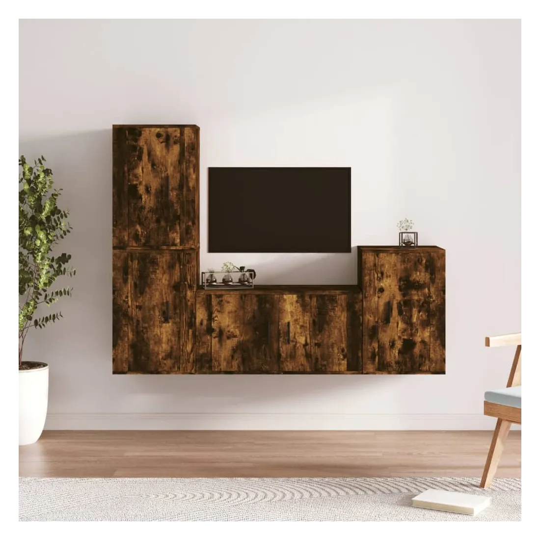 Cet ensemble de meubles TV classique est conçu pour être le point central de votre pièce, avec un design à la fois tendance et pratique. Matériau robuste : le bois d'ingénierie est d'une qualité exceptionnelle avec une surface lisse et présente également résistance, stabilité et résistance à l'humidité.Grand espace de rangement : l'ensemble de meubles TV offre un grand espace de rangement pour garder tous vos magazines, DVD et autres articles bien organisés.Design mural : le meuble TV ne prend pas de place au sol. Vous pouvez l'accrocher au mur facilement. Bon à savoir :Pour faciliter au maximum le montage, chaque produit est livré avec des instructions.Les vis et les chevilles pour l'intérieur du mur ne sont pas incluses. Nous vous conseillons de trouver et d'utiliser des vis et des chevilles adaptées spécifiquement à vos murs. Si vous n'êtes pas sûr, vous pouvez consulter un professionnel. Veuillez lire et suivre chaque étape des instructions.