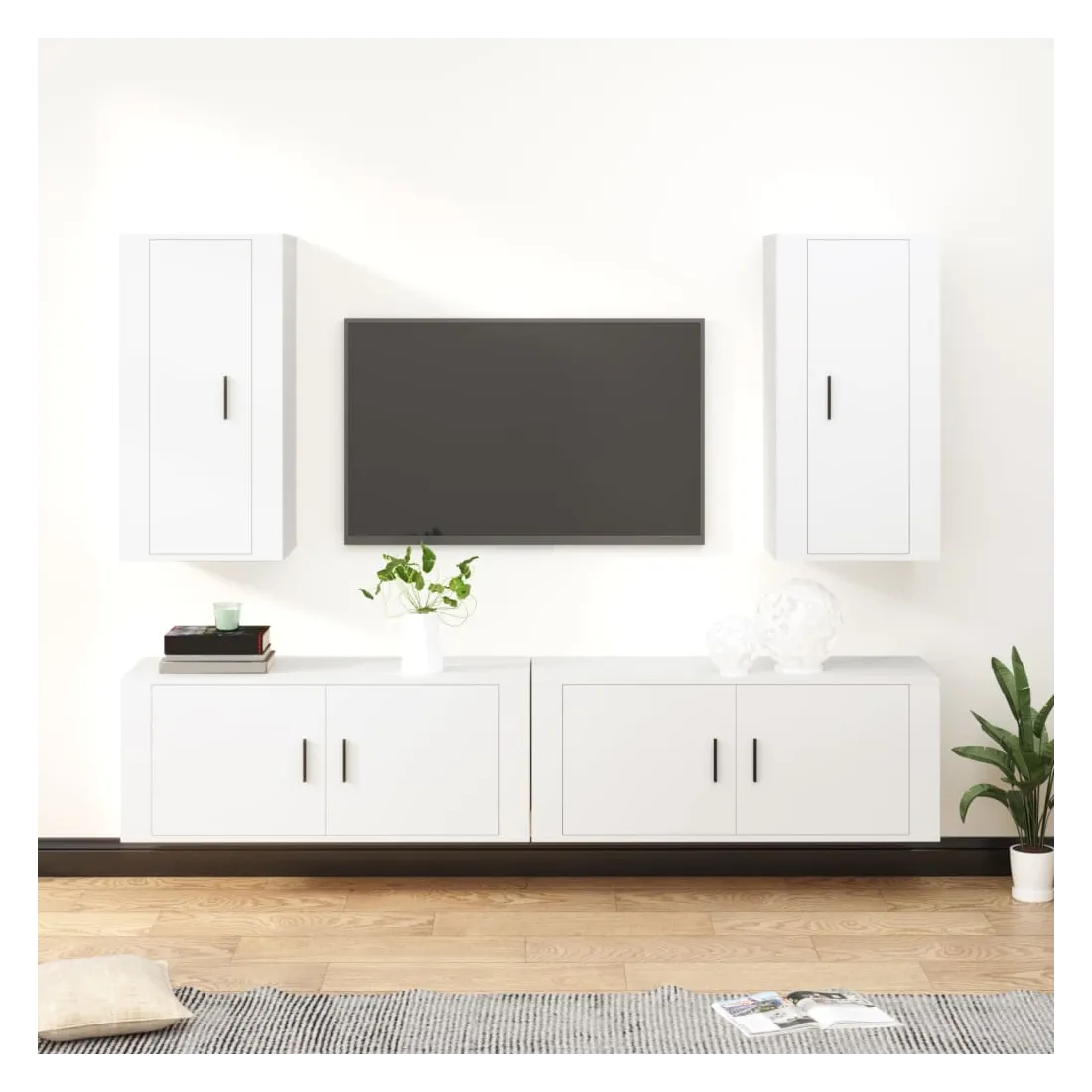 Cet ensemble de meubles TV classique est conçu pour être le point central de votre pièce, avec un design à la fois tendance et pratique. Matériau robuste : le bois d'ingénierie est d'une qualité exceptionnelle avec une surface lisse et présente également résistance, stabilité et résistance à l'humidité.Grand espace de rangement : l'ensemble de meubles TV offre un grand espace de rangement pour garder tous vos magazines, DVD et autres articles bien organisés.Design mural : le meuble TV ne prend pas de place au sol. Vous pouvez l'accrocher au mur facilement. Bon à savoir :Pour faciliter au maximum le montage, chaque produit est livré avec des instructions.Les vis et les chevilles pour l'intérieur du mur ne sont pas incluses. Nous vous conseillons de trouver et d'utiliser des vis et des chevilles adaptées spécifiquement à vos murs. Si vous n'êtes pas sûr, vous pouvez consulter un professionnel. Veuillez lire et suivre chaque étape des instructions.