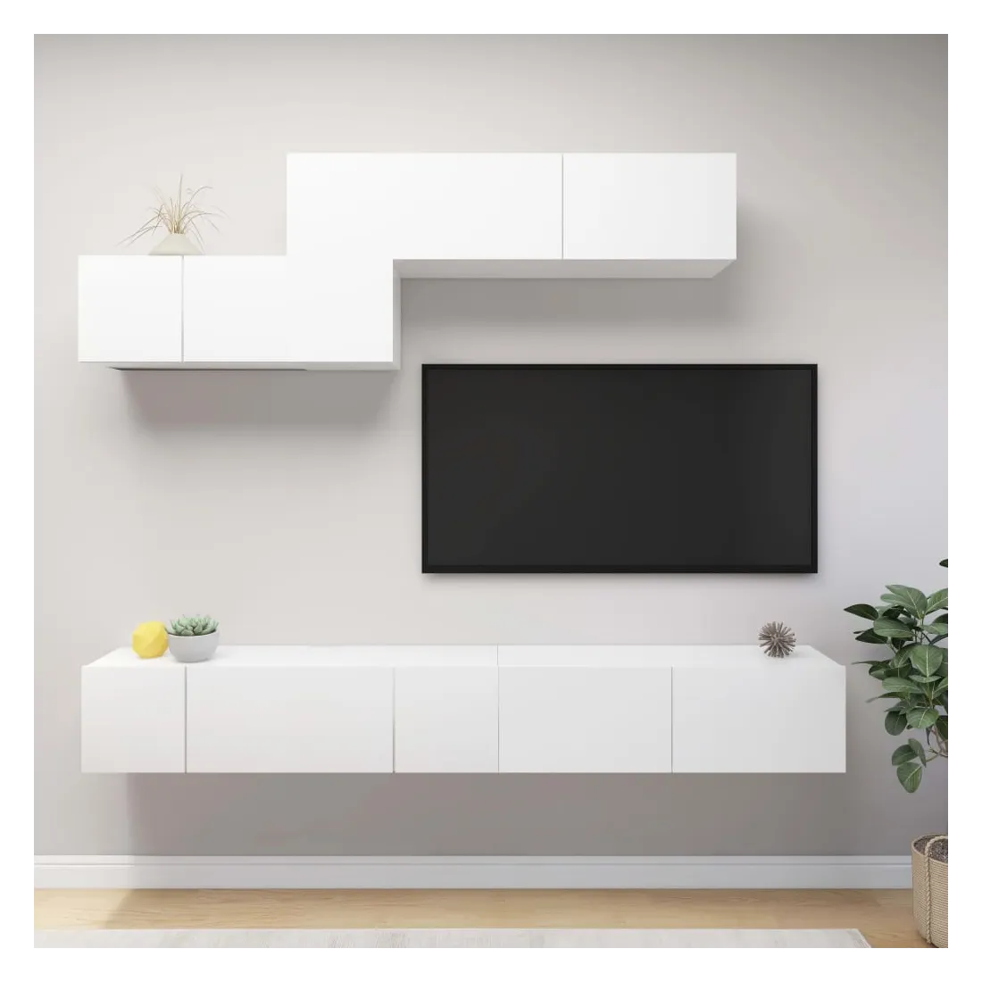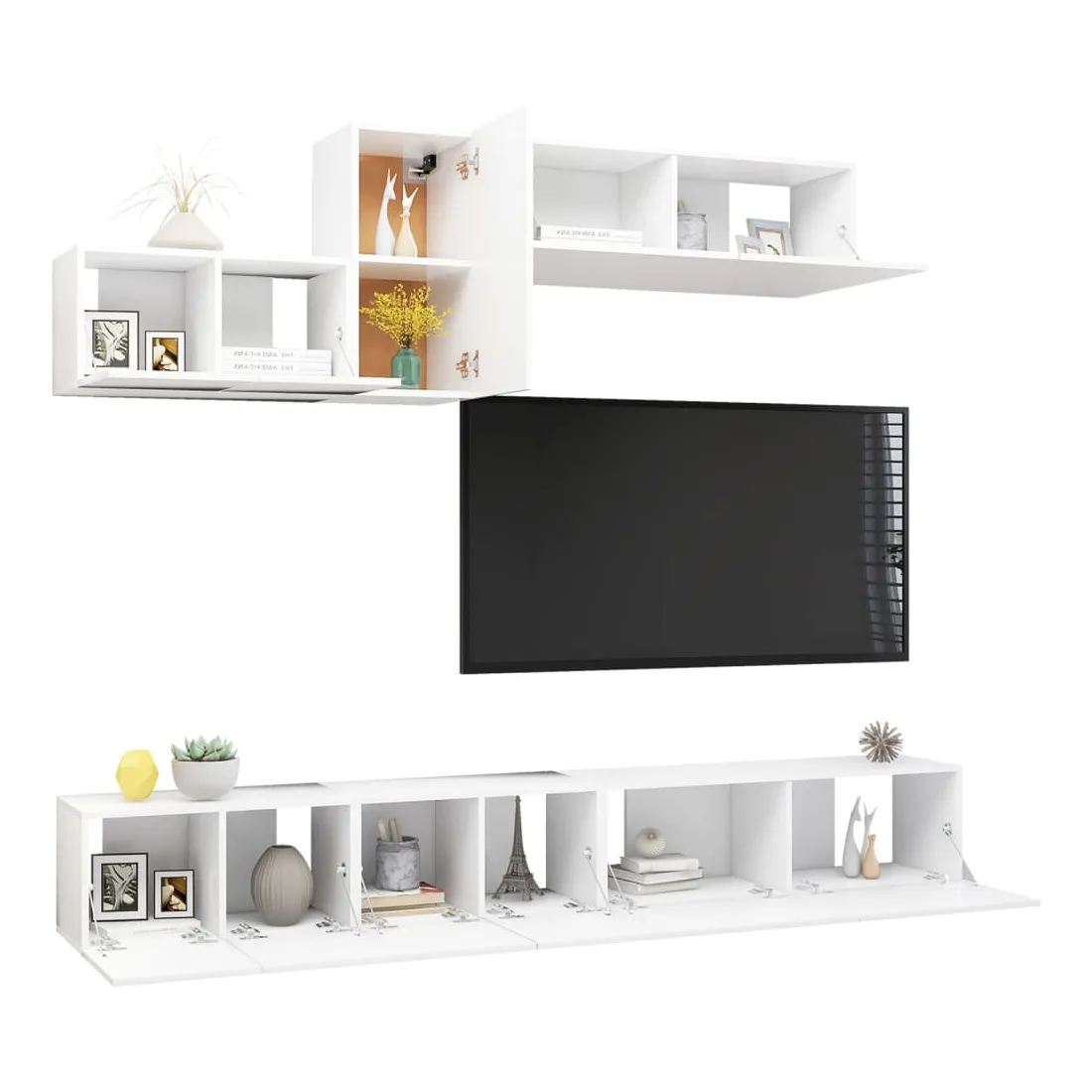 Ce meuble TV, doté d'un design moderne et d'un grand espace de rangement, devient un point de mire de votre salon. Cet ensemble de meuble TV suspendu est fabriqué en bois d'ingénierie, ce qui le rend robuste et durable. L'ensemble est fixé au mur, ce qui en fait un supplément intemporel à votre maison. L’ensemble dispose de plusieurs compartiments qui en font un endroit idéal pour stocker tous vos magazines, DVD ou autres articles. Cet ensemble de meuble Hifi est facile à nettoyer avec un chiffon humide.