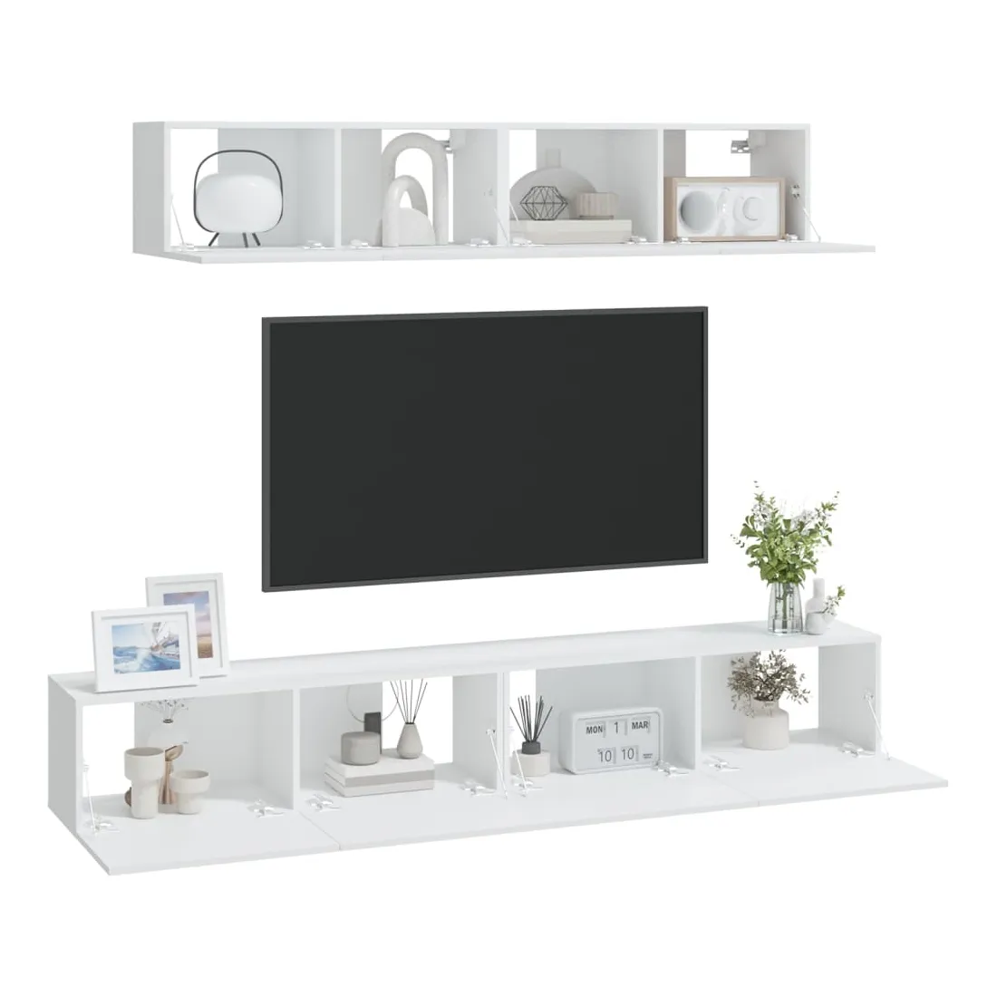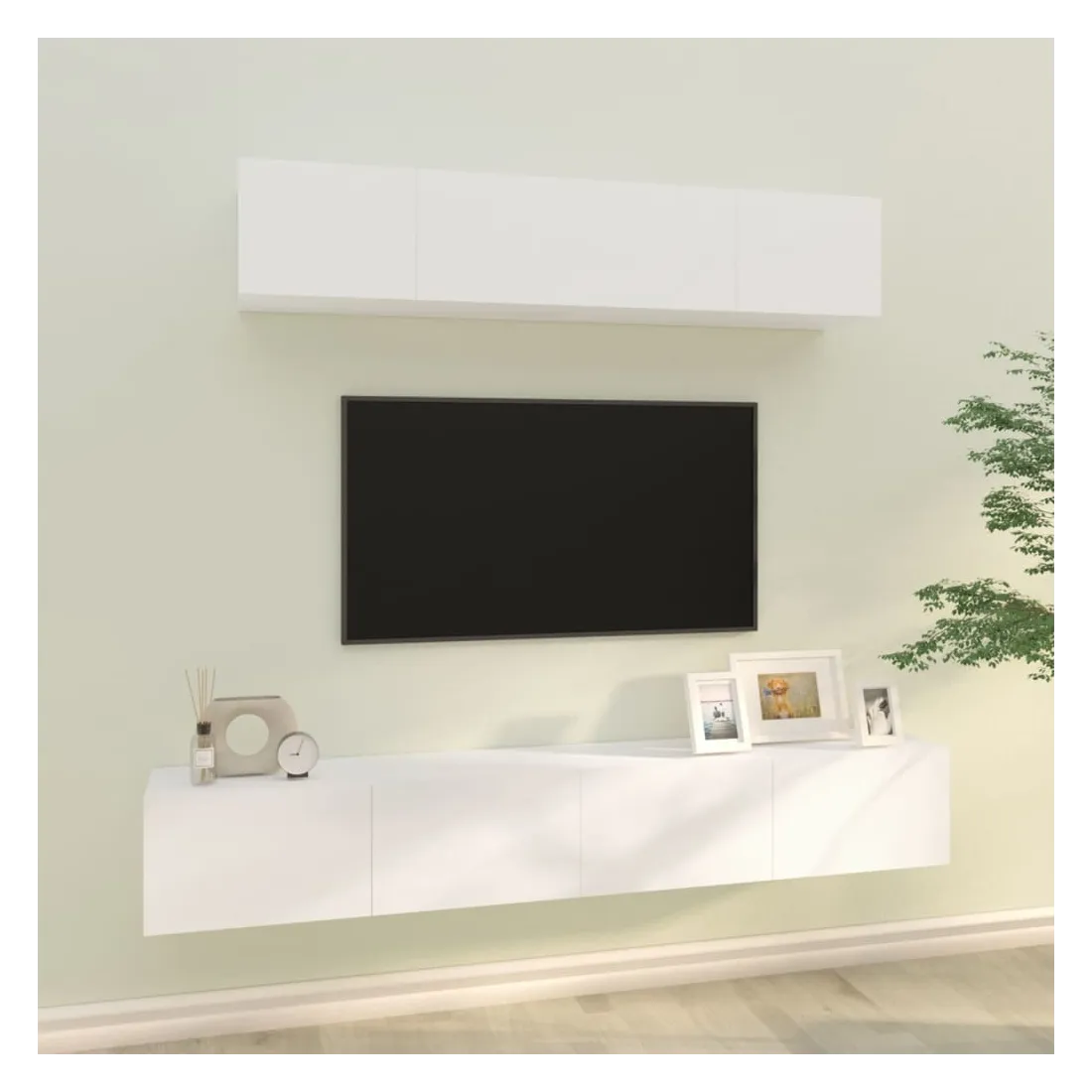 Cet ensemble de meubles TV classique est conçu pour être le point central de votre pièce, avec un design à la fois tendance et pratique. Matériau robuste : le bois d'ingénierie est d'une qualité exceptionnelle avec une surface lisse et présente également résistance, stabilité et résistance à l'humidité.Grand espace de rangement : l'ensemble de meubles TV offre un grand espace de rangement pour garder tous vos magazines, DVD et autres articles bien organisés.Design mural : le meuble TV ne prend pas de place au sol. Vous pouvez l'accrocher au mur facilement. Remarque :Les vis et les chevilles pour l'intérieur du mur ne sont pas incluses. Recherchez et utilisez des vis et des chevilles adaptées à vos murs. Si vous n'êtes pas sûr, demandez conseil à un professionnel. Lisez et suivez attentivement chaque étape des instructions.Chaque produit est livré avec un manuel de montage dans la boîte pour un montage facile.