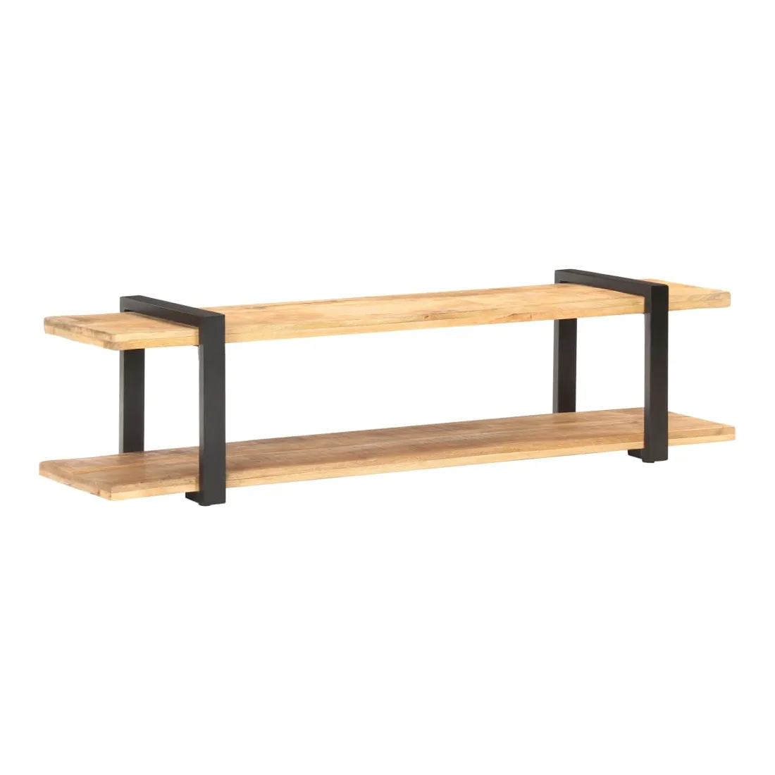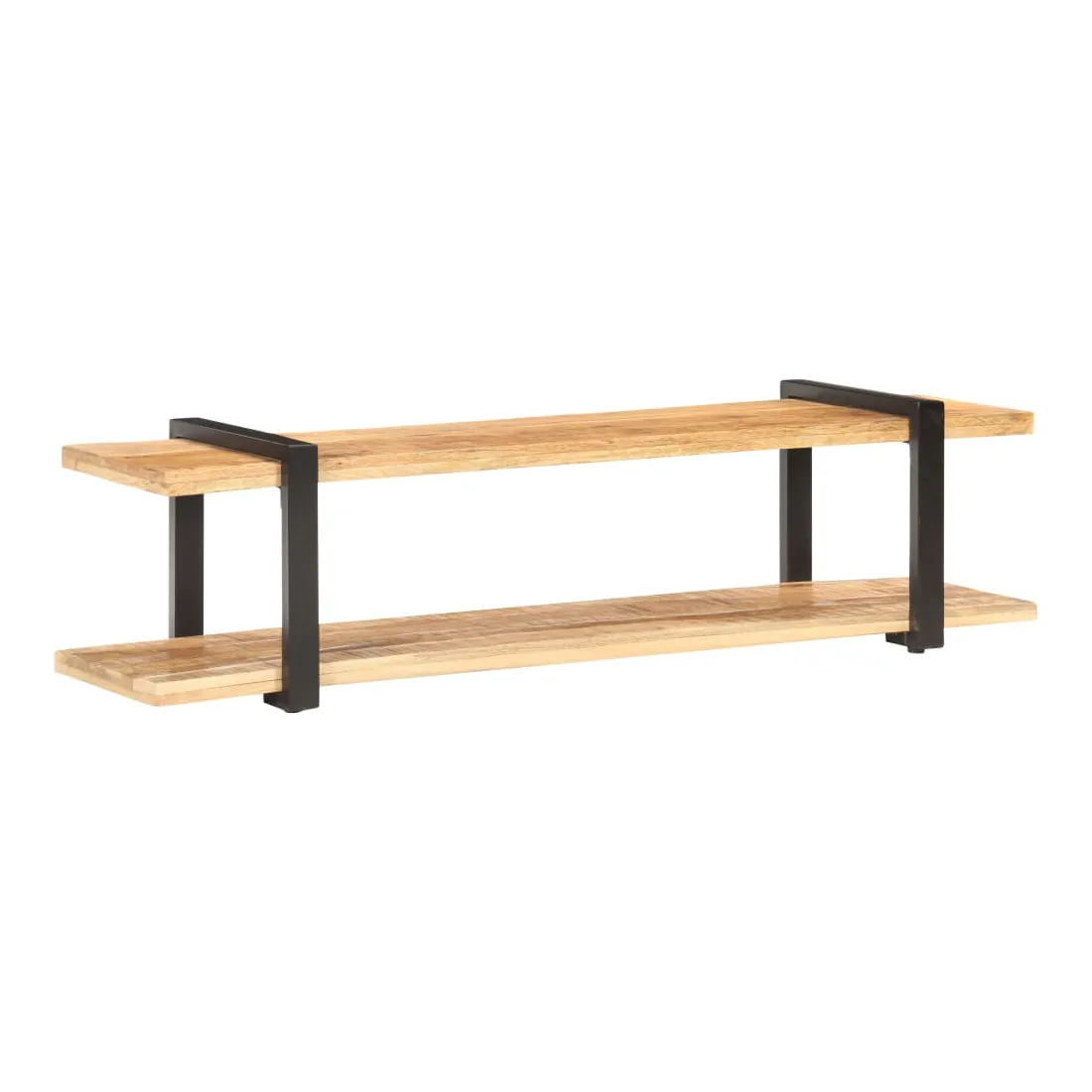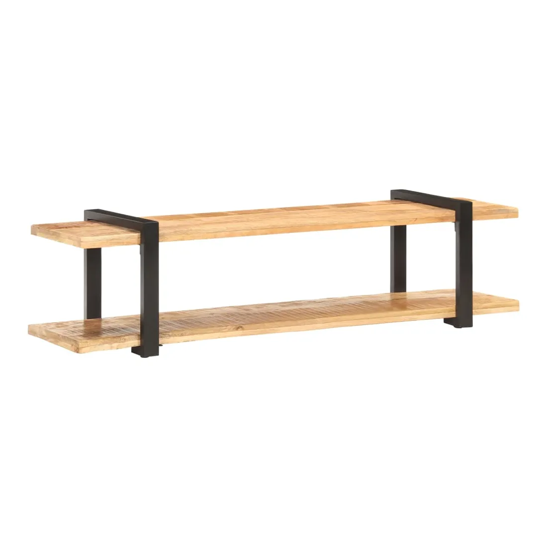 Cet élégant meuble TV en bois de style industriel est le point de mire de votre salon ou de votre espace de divertissement. Il peut également être utilisé comme table basse, buffet, bahut, etc. Le meuble TV est fait de bois de manguier brut, qui est un bois dur tropical. Il a la force de soutenir le poids et aussi de résister à l’usure du temps. De plus, l’artisanat exquis et les belles veines de bois font chaque pièce légèrement différente l'une de l'autre. Les pieds en fer enduit de poudre ajoutent une stabilité supplémentaire. L'étagère inférieure vous permet de garder les lecteurs DVD, les consoles de jeu, les appareils de diffusion en continu et les supports multimédia bien rangés. Remarque importante : les couleurs varient d'une pièce à l'autre, rendant chaque pièce unique. La livraison est aléatoire, garantissant l'exclusivité et l'individualité de votre produit.