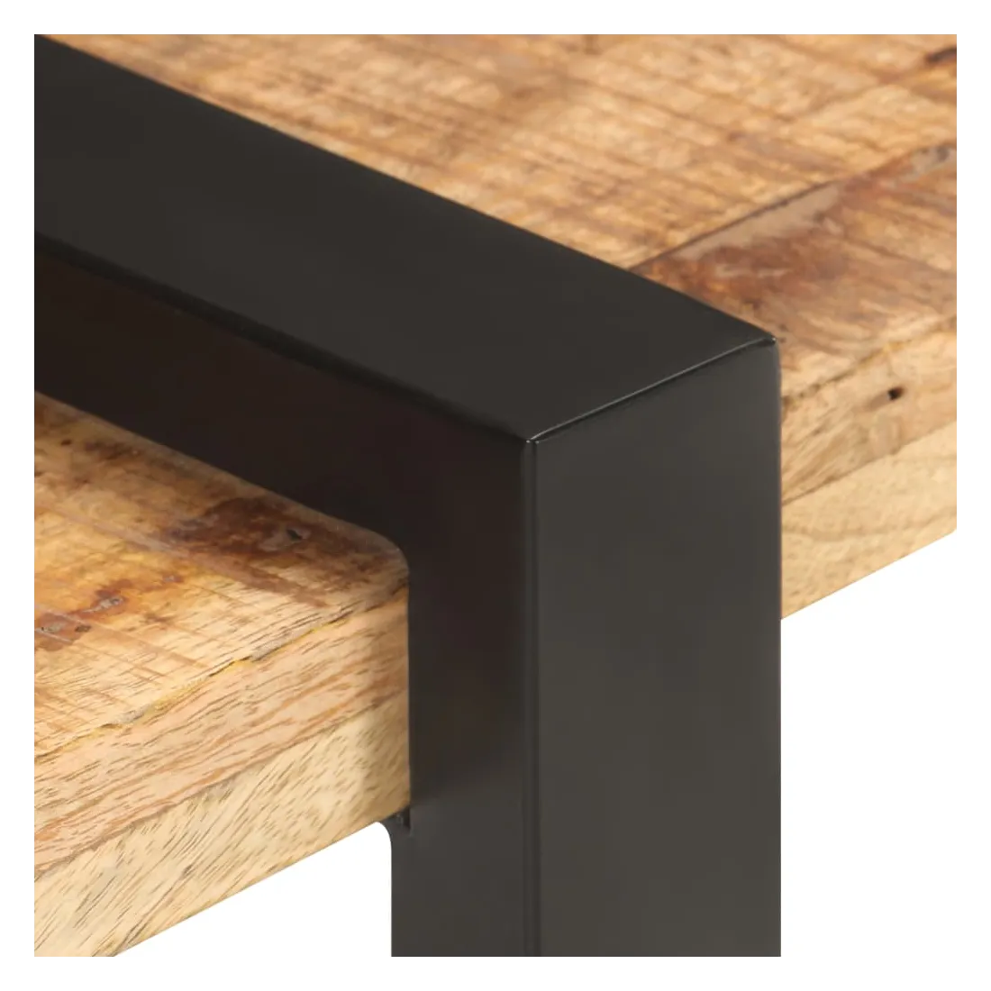 - Matériau : bois massif de manguier brut avec une finition naturelle, fer enduit de poudre