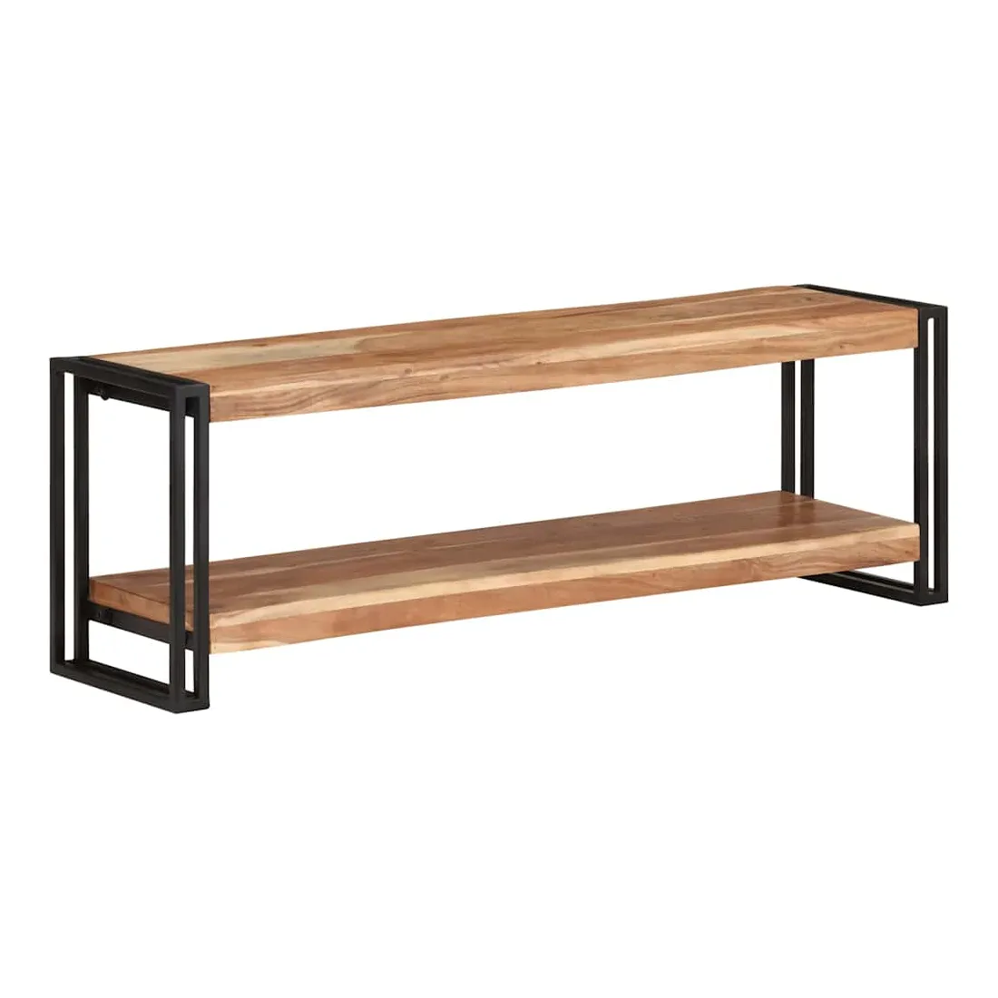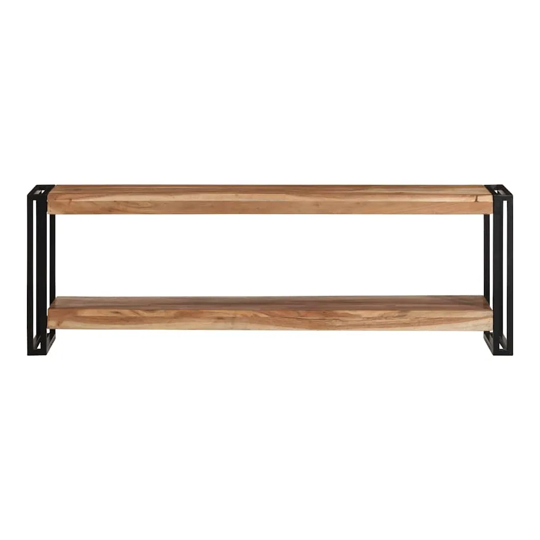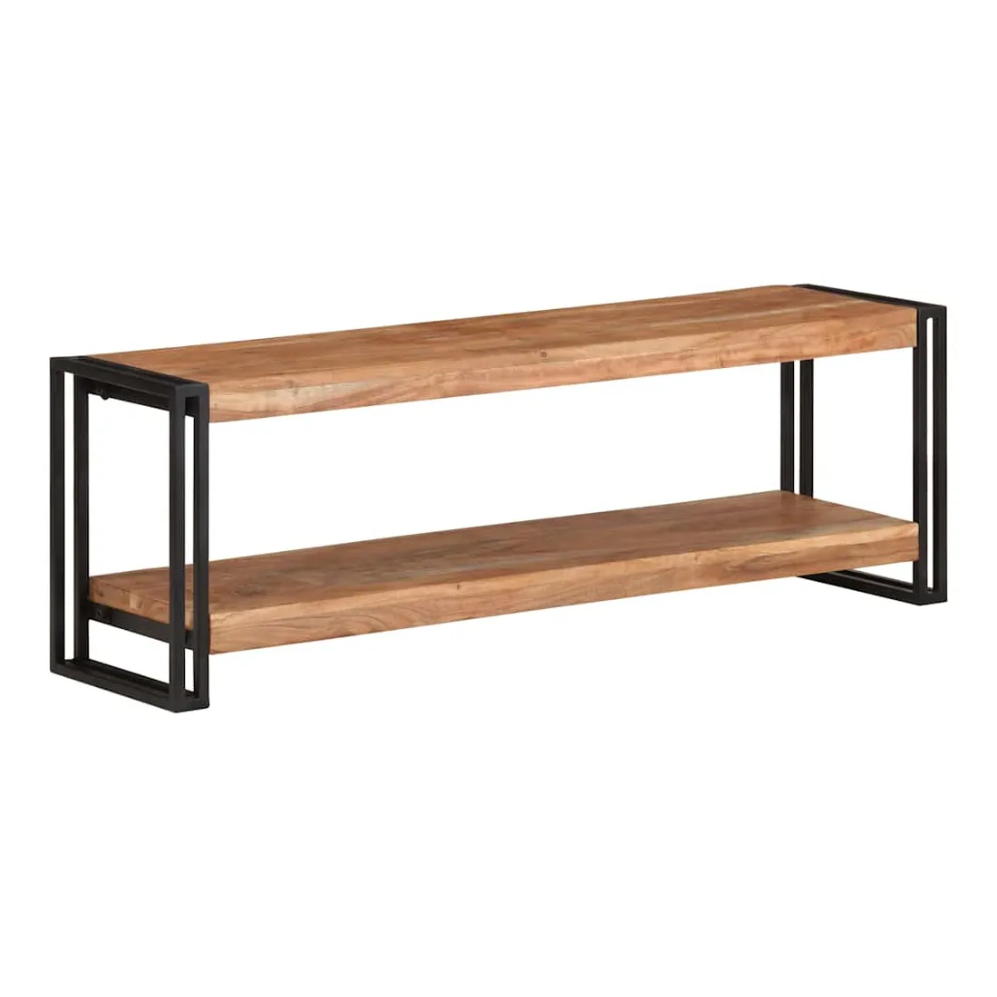 Ce meuble TV en bois ajoute un aspect industriel et convient à votre salon et votre chambre à coucher. Le meuble TV est fabriqué en bois d'acacia massif, ce qui le rend stable et durable. Le dessus robuste peut être utilisé pour mettre vos objets décoratifs. L’étagère de rangement offre également beaucoup d’espace pour stocker vos appareils multimédia, livres, ainsi que divers autres articles. Remarque importante : les couleurs et les grains varient d'une pièce à l'autre, rendant chaque pièce unique. La livraison est aléatoire, ce qui garantit l'exclusivité et l'individualité de votre produit.