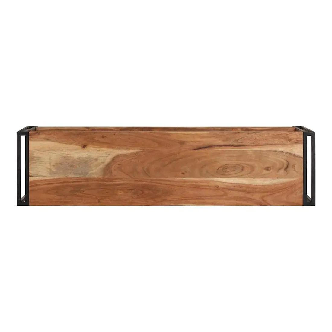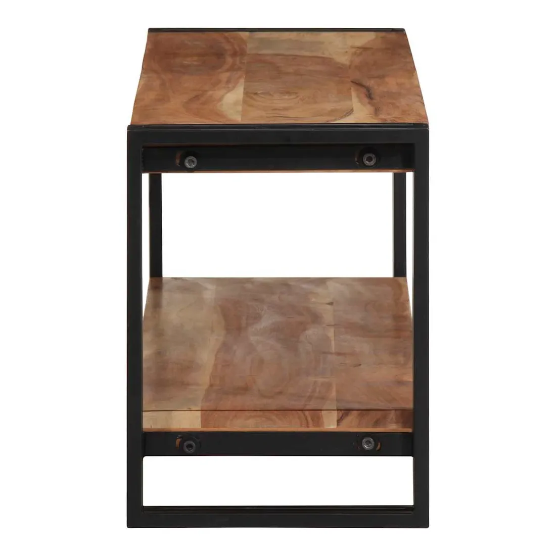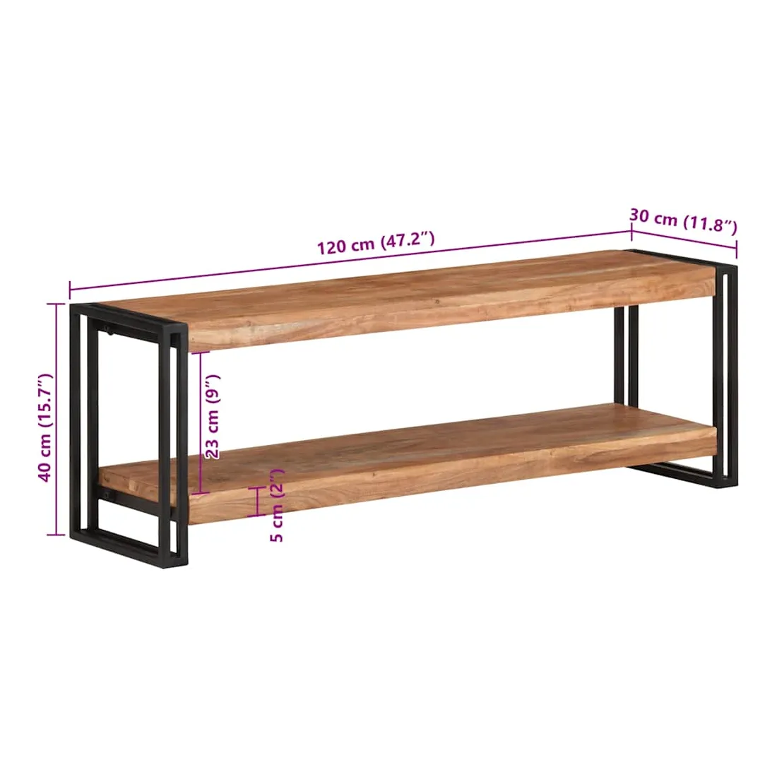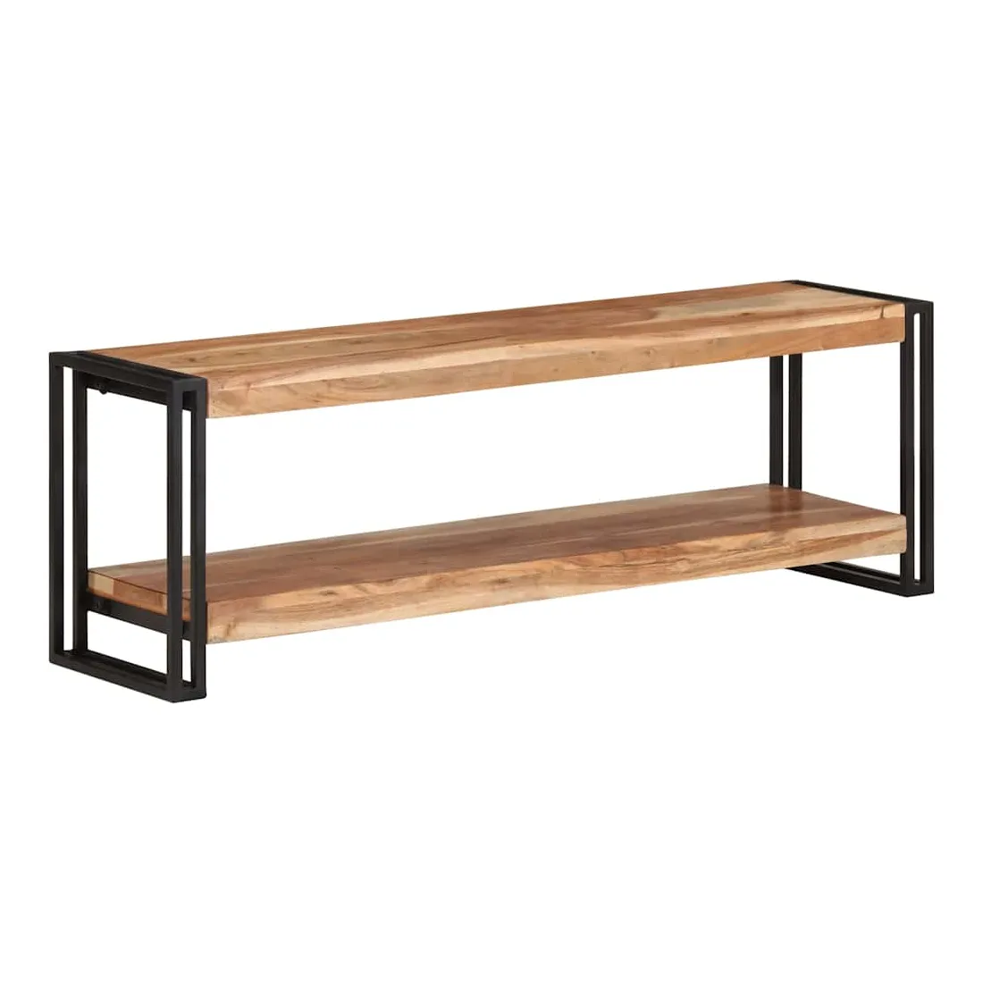 Ce meuble TV en bois ajoute un aspect industriel et convient à votre salon et votre chambre à coucher. Le meuble TV est fabriqué en bois d'acacia massif, ce qui le rend stable et durable. Le dessus robuste peut être utilisé pour mettre vos objets décoratifs. L’étagère de rangement offre également beaucoup d’espace pour stocker vos appareils multimédia, livres, ainsi que divers autres articles. Remarque importante : les couleurs et les grains varient d'une pièce à l'autre, rendant chaque pièce unique. La livraison est aléatoire, ce qui garantit l'exclusivité et l'individualité de votre produit.