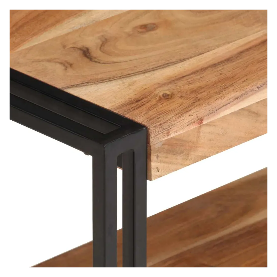 - Matériau : bois d'acacia massif avec une finition naturelle, fer avec revêtement enduit de poudre noir