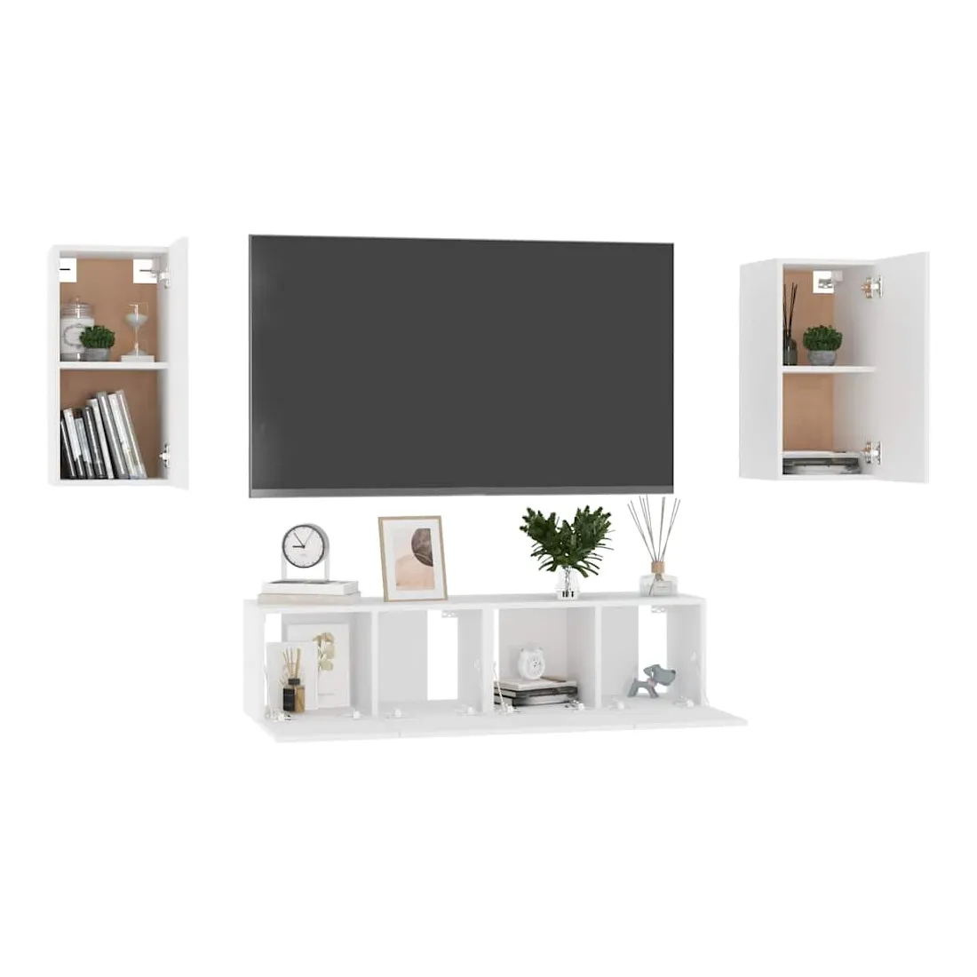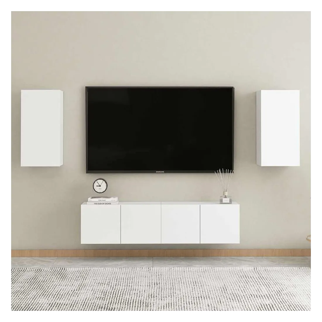 Cet ensemble de meuble TV robuste est destiné à être le point de mire de votre pièce avec un design à la fois tendance et pratique. Le meuble TV est fixé au mur, ce qui en fait un supplément intemporel à votre maison. Il offre de nombreux compartiments de rangement, ce qui en fait un endroit idéal pour stocker tous vos livres, magazines, DVD ou autres objets. Le meuble stéréo est facile à entretenir et à nettoyer avec un chiffon humide.