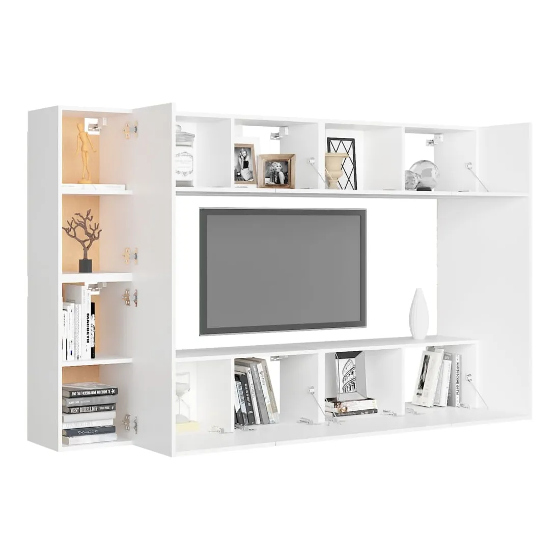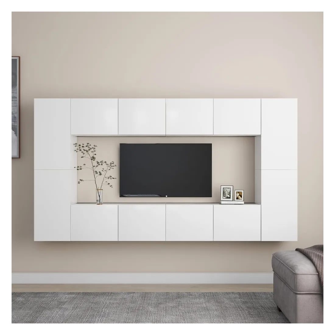 Cet ensemble de meuble TV robuste est destiné à être le point de mire de votre pièce avec un design à la fois tendance et pratique. Le meuble TV est fixé au mur, ce qui en fait un supplément intemporel à votre maison. Il offre de nombreux compartiments de rangement, ce qui en fait un endroit idéal pour stocker tous vos livres, magazines, DVD ou autres objets. Le meuble stéréo est facile à entretenir et à nettoyer avec un chiffon humide.